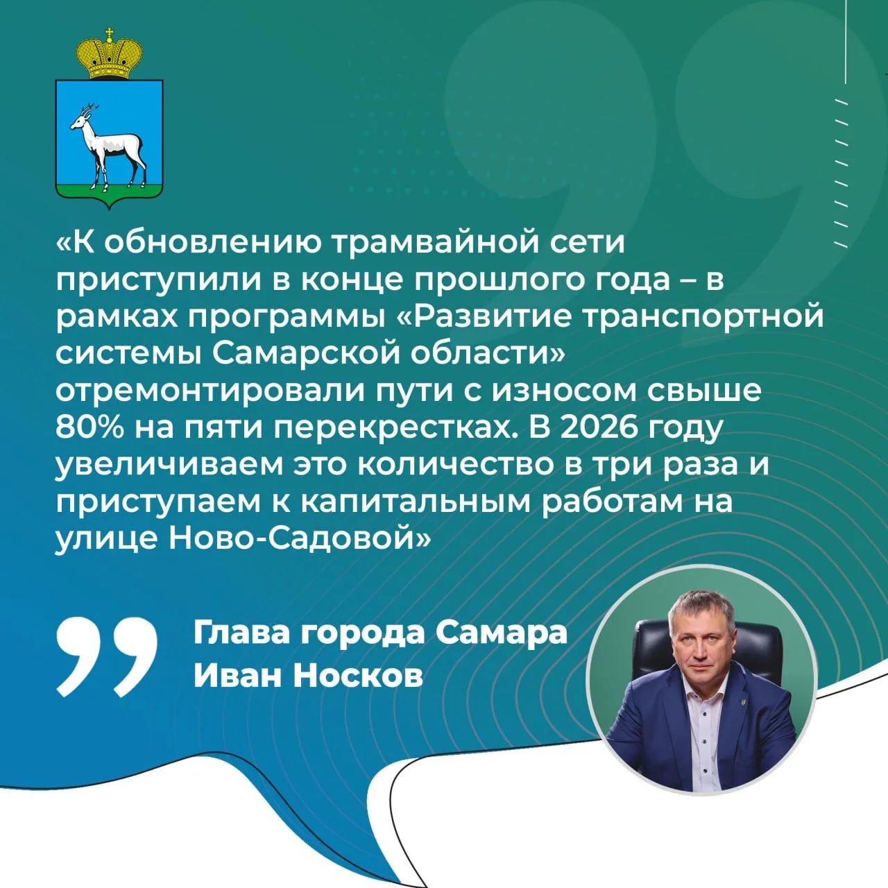 Трамвайно-троллейбусное управление Самары заключило контракты на ремонт трамвайных путей в 2026 году. Капитальные работы запланированы на двух участках улицы Ново-Садовой – от Ново-Вокзальной до кольца ТЦ «Апельсин» и от ТЦ «Апельсин» до улицы Гастелло. Также трамвайные пути обновят на 15 перекрестках, в местах пересечения с автомобильными дорогами.