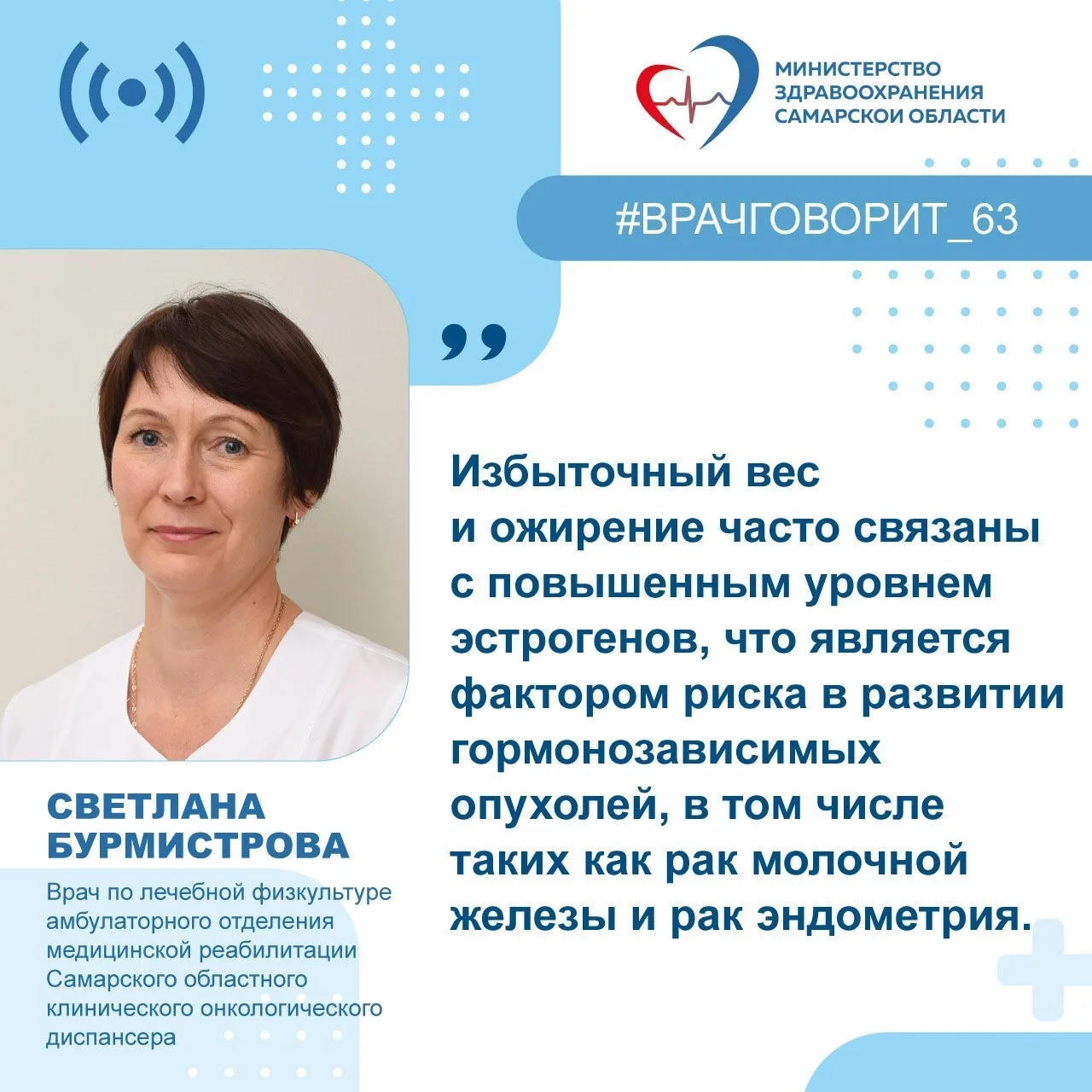 Об этом рассказывает врач по лечебной физкультуре амбулаторного отделения медицинской реабилитации Самарского областного клинического онкологического диспансера Светлана Бурмистрова.