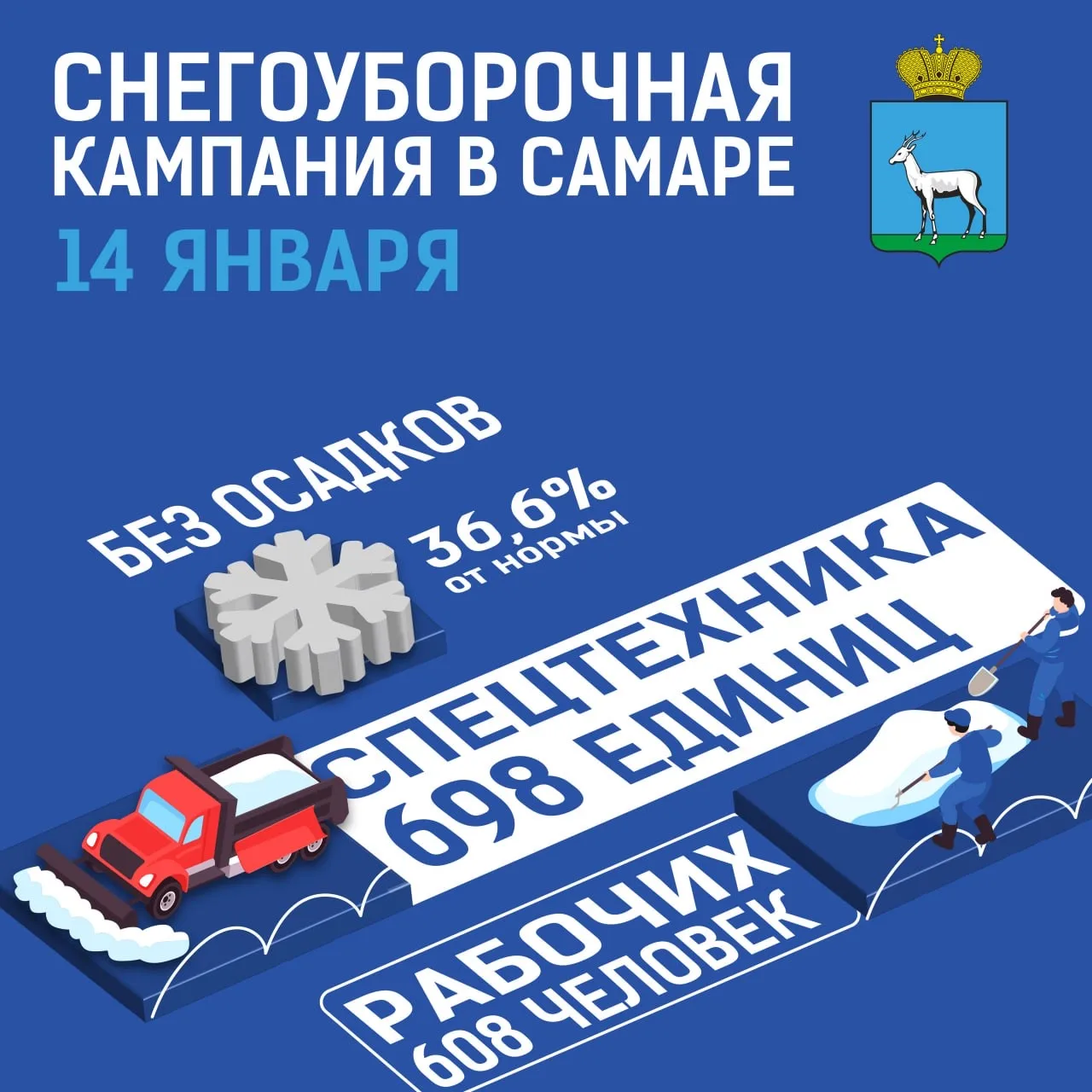 ✅ Всего 14 января работали 608 дорожных рабочих и 698 единиц спецтехники. За сутки вывезли 9 121 тонн снега.