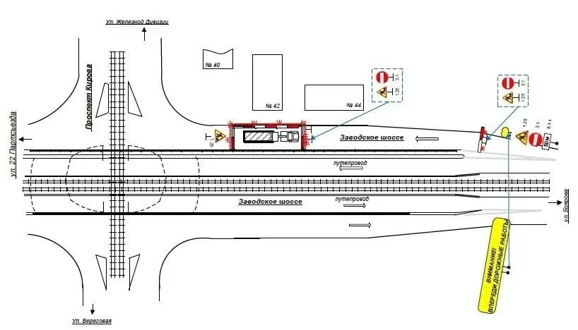 🚌 В связи с ремонтом автобусы маршрутов №№ 6, 21, 38, 47 и 87 по направлению движения в сторону улицы Железной Дивизии будут следовать по путепроводу «Заводское шоссе» до улицы Кабельной, далее разворачиваться и возвращаться на кольцо на проспекте Кирова, после чего автобусы проследуют по своему обычному маршруту. Трамваи будут осуществлять перевозки по обычной схеме.