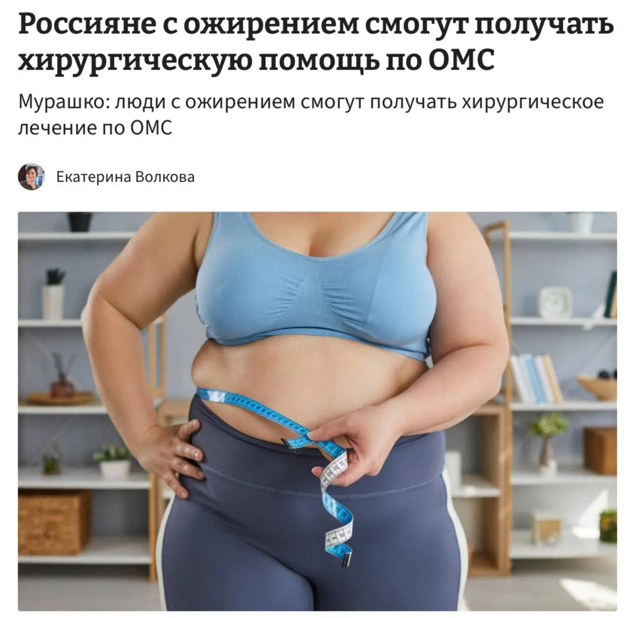 Теперь россияне могут сделать операцию от ожирения бесплатно — по ОМС. Об этом в четверг заявил глава Минздрава Михаил Мурашко на съезде Профсоюза работников здравоохранения.