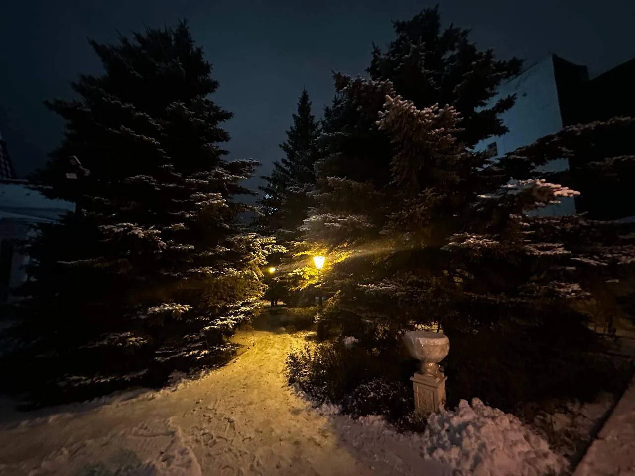 С первым снегом улочки становятся особенно таинственными и загадочными. Будто мы попали в сказку, сюжет которой пишем сами, а высокие ели придают особый шарм этому повествованию.