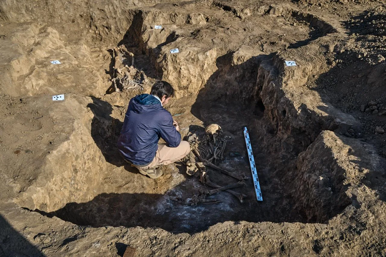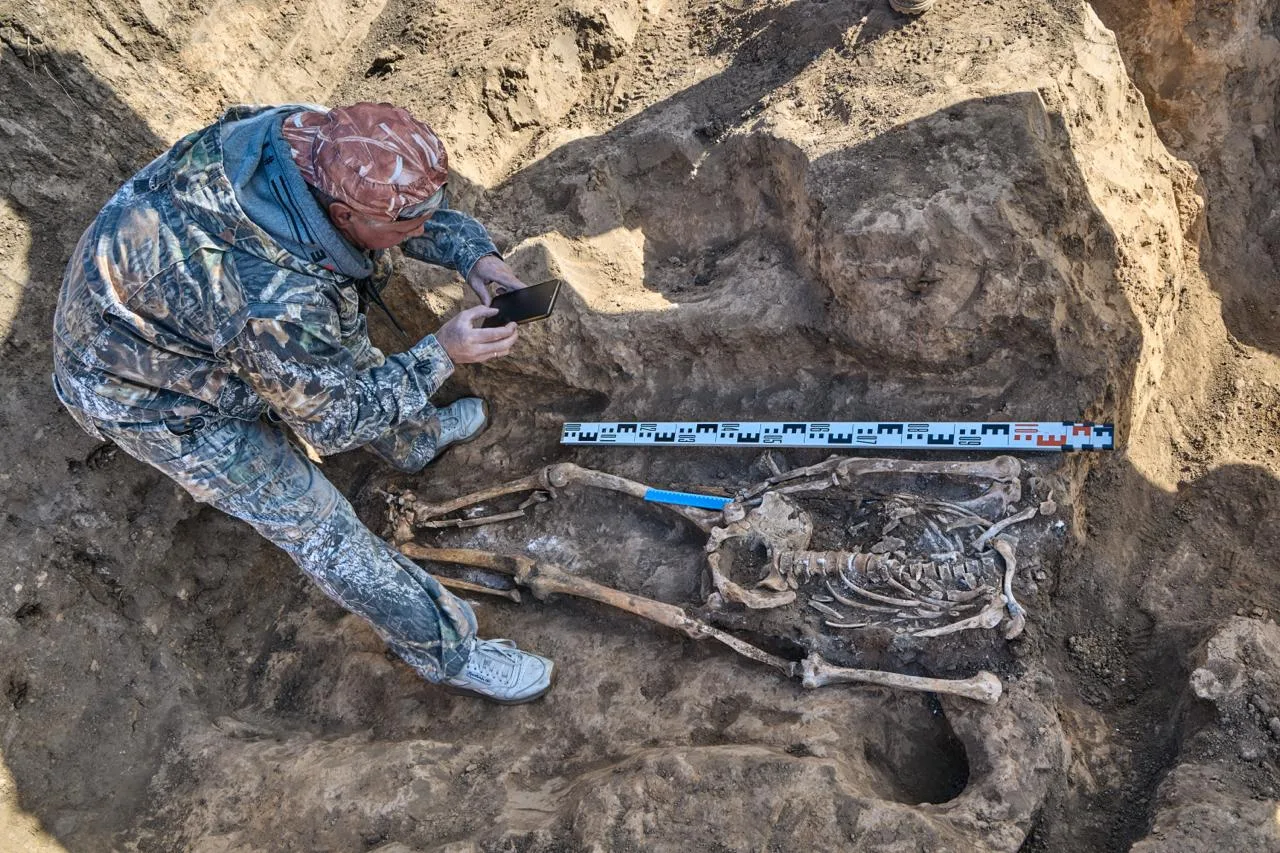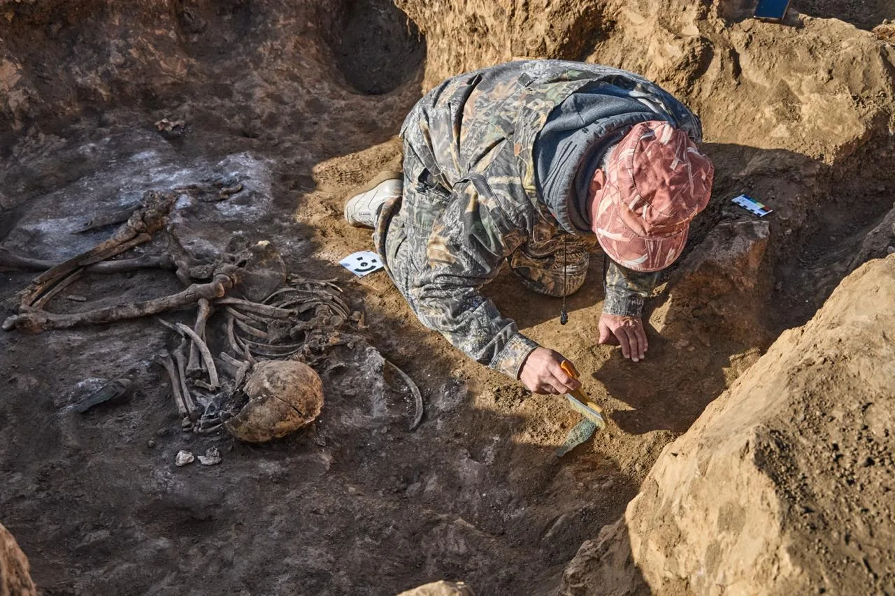 - Сарматское захоронение более позднего периода (раннего железного века). Как рассказывают ученые, его легко узнать по характерному признаку — короткому железному мечу, уложенному вдоль правой руки погребенного воина-кочевника.