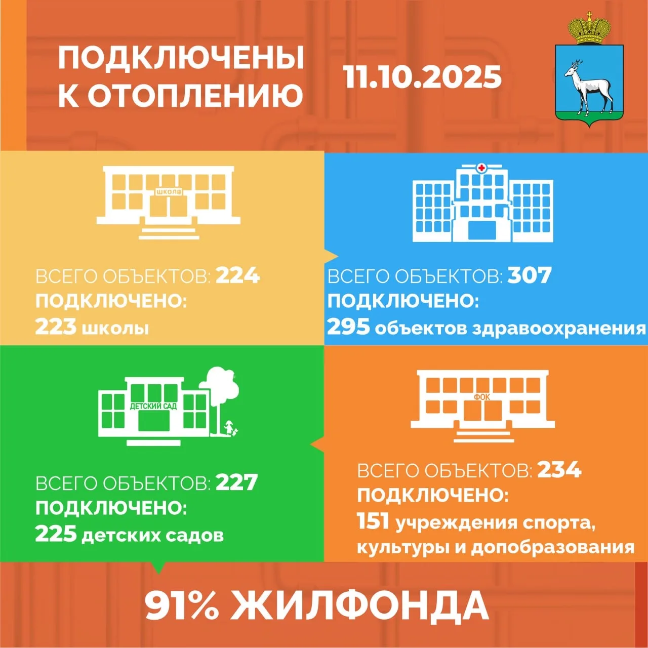 Уточнить дату подачи теплоносителя на многоквартирный дом можно на сайте своей управляющей компании или ТСЖ либо по их телефонам, размещенным на сайте администрации города Самара: https://samadm.ru/city_life/otopitelnyy-sezon-2025-2026/.