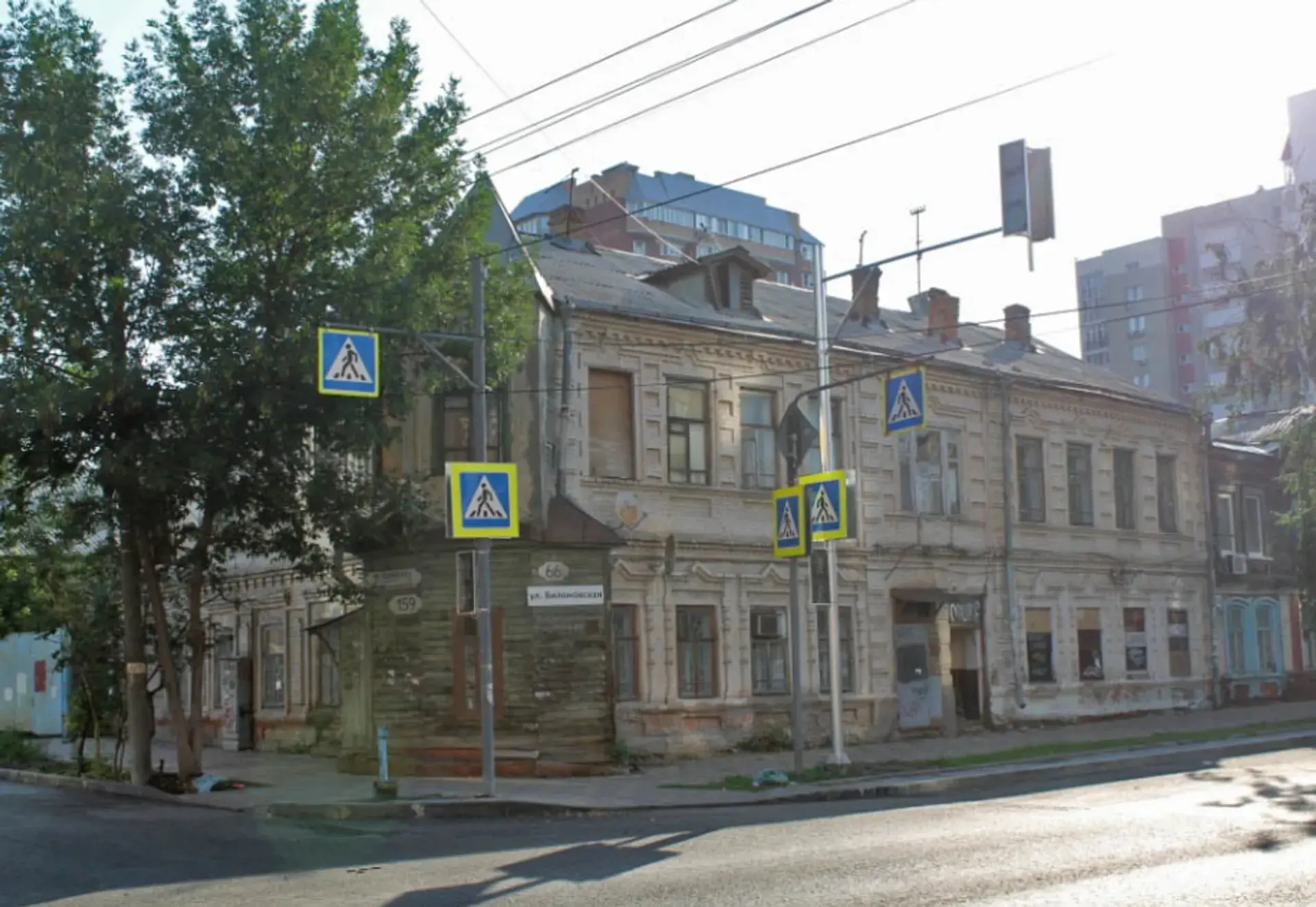 Доходный дом был Филимонова построен в 1907 году по проекту самарского архитектора Г.Н. Мошкова, расположен на углу ул. Л. Толстого (бывшей ул. Москательной) и ул. Ленинской (бывшей ул. Сокольничьей):