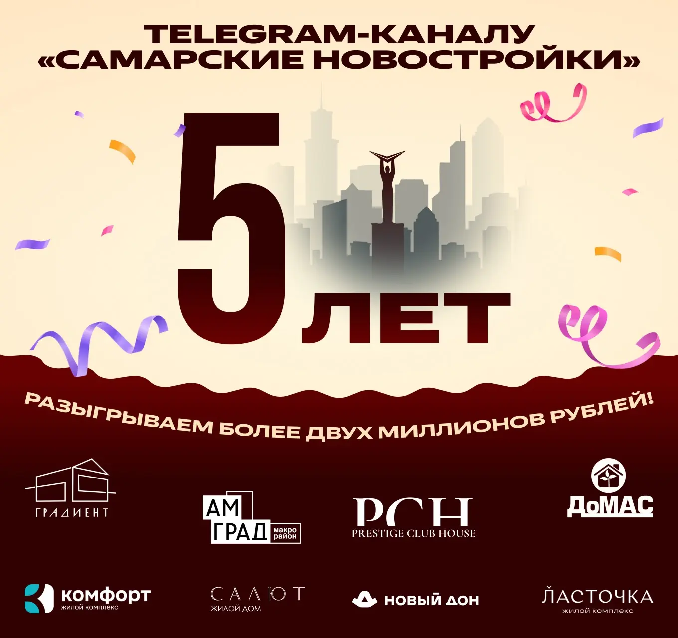 Ровно через месяц Telegram-каналу «Самарские новостройки» исполняется 5 лет — запускаем масштабный розыгрыш для наших подписчиков!