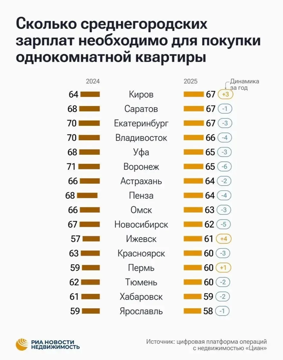 🔻А быстрее остальных справят новоселье жители Новокузнецка (3 года и 8 месяцев или 44 зарплаты), Кемерово (4 года и 4 месяца или 54 зарплаты), Липецка и вышеупомянутого Тольятти (4,5 года или 54 зарплаты)