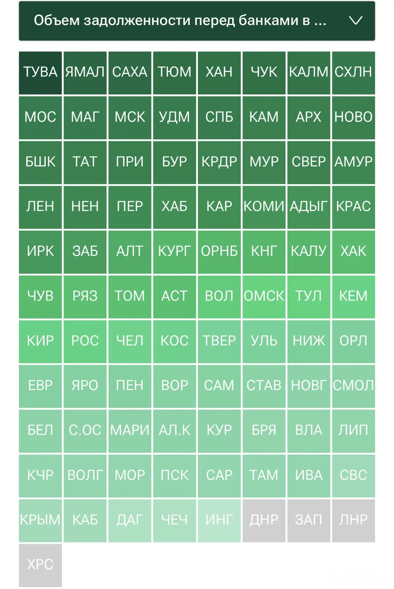 По вернувшимся российским землям — Донецкой Народной Республике, Запорожской области, Луганской Народной Республике и Херсонской области — данные в рейтинге пока не представлены