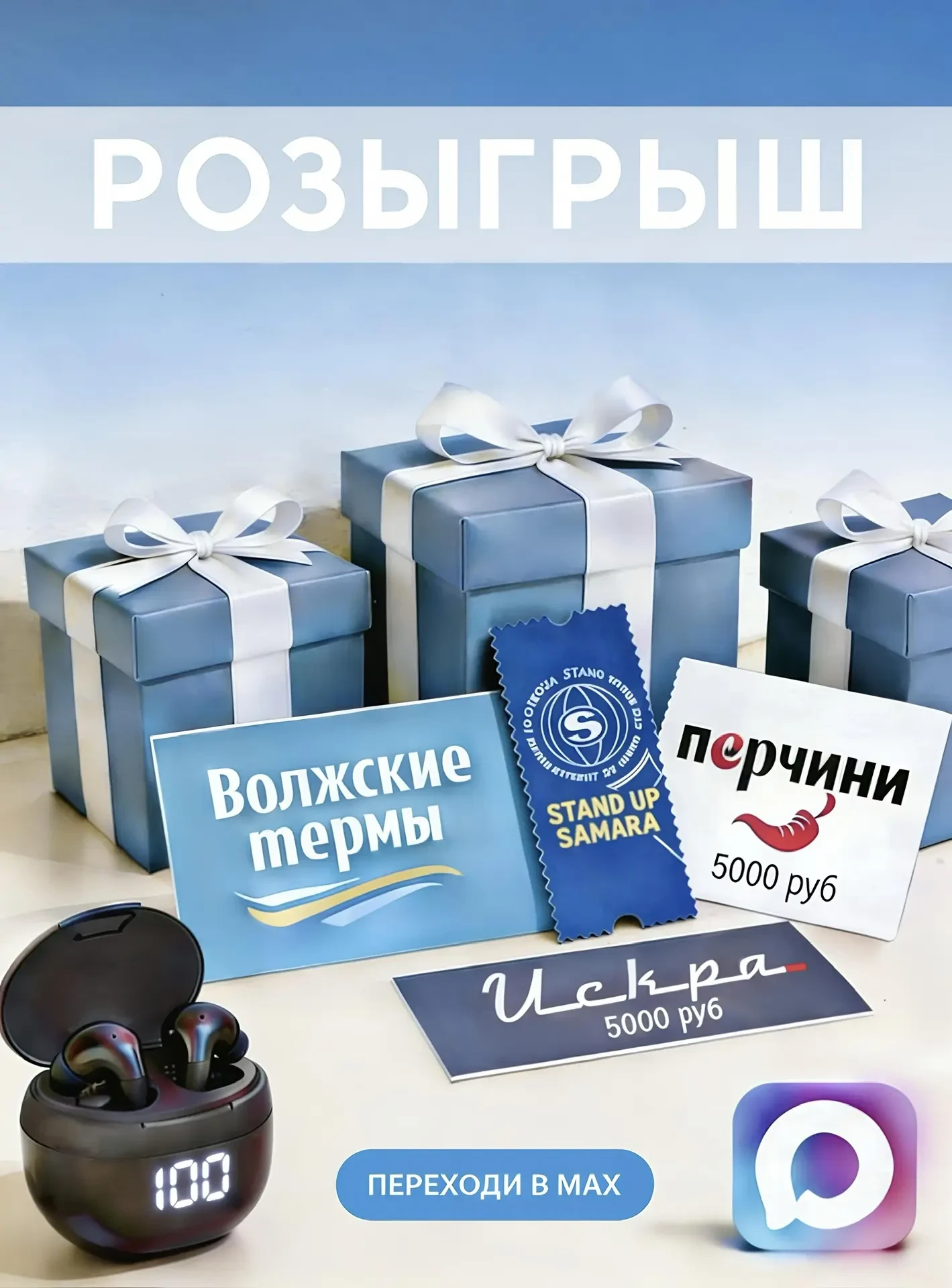 🎁 Напоминаем про розыгрыш сертификатов в Перчини, Волжские термы, Искру, билетов на стендап и беспроводные наушники! 🎁