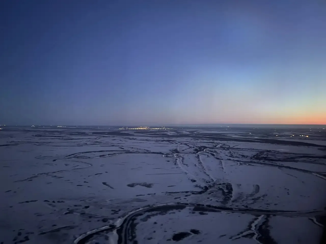Длительность полёта, плюс-минус, одинакова, и до ХМАО долетаем за три с половиной сонных часа над лесами и зачатками тундры. Утро дарит красивейшие обские виды, правда, если только ясное небо. От Нижневартовска до томского Нефтеграда чуть более часа: хоть и прохладно, но весна чувствуется и здесь.