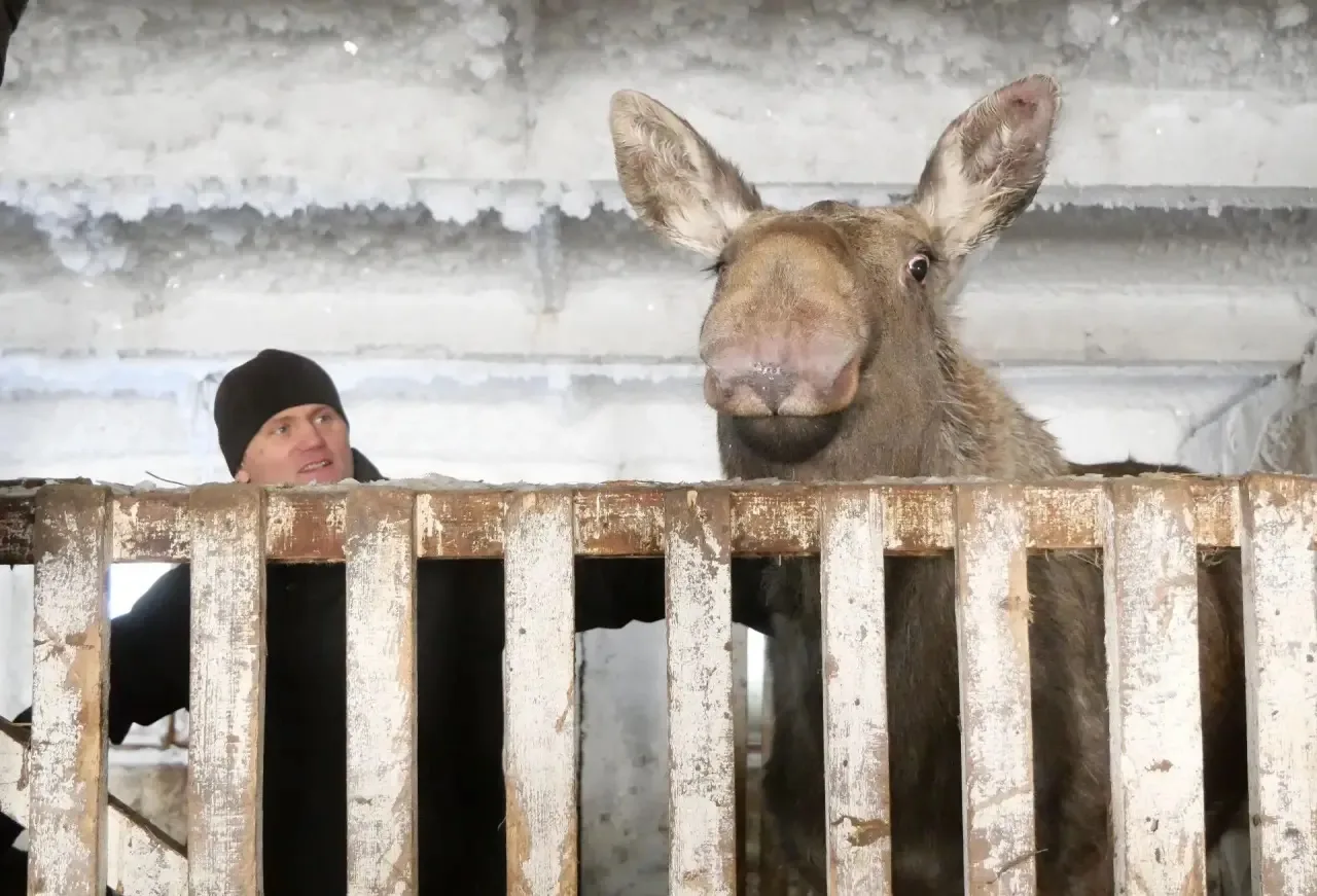 Есть и очень трогательная история, связанная с маленьким лосенком, который потерялся и вышел к людям. Фермеры его выходили и выкормили. Сегодня это молодая, очень красивая лосиха Малышка. Она живет и дружит с коровами и телятами, но обходит стороной лошадей, обитающих на ферме)))