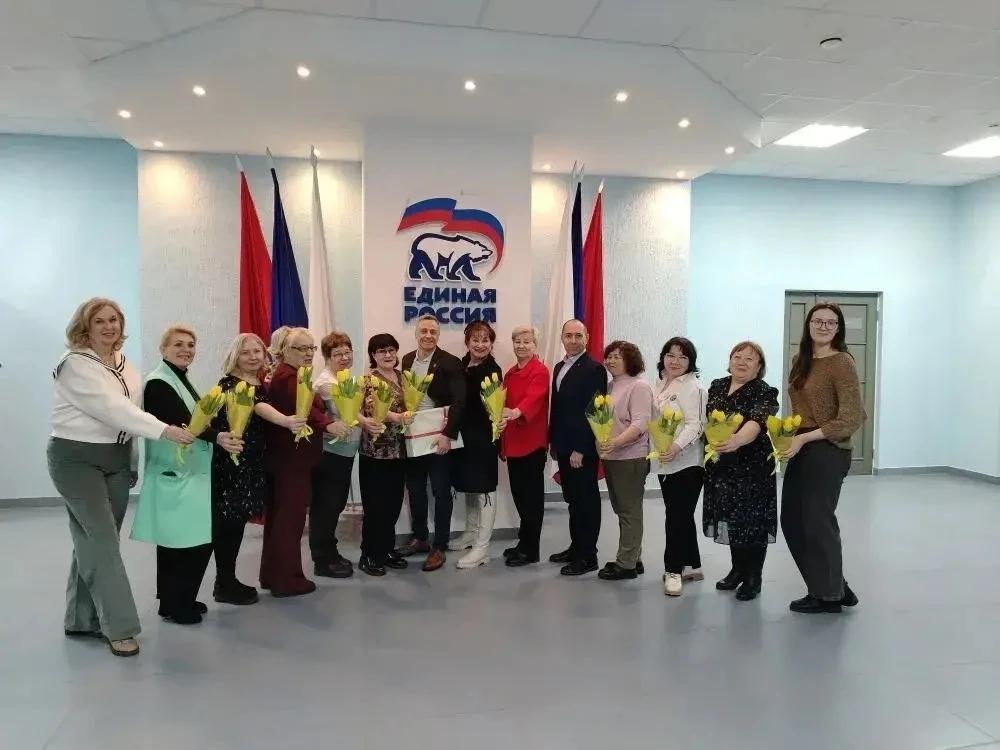 С депутатом городской Думы, Евгением Ядренкиным, поздравили председателей первичных отделений «Единой России» Советского района.