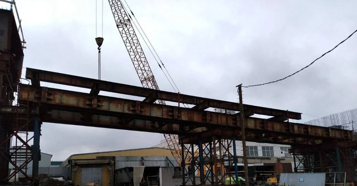 Строители начали сборку металлоконструкций пролёта строящегося путепровода через ж/д пути, который соединит ул. Инициативную и Октябрьский проспект.