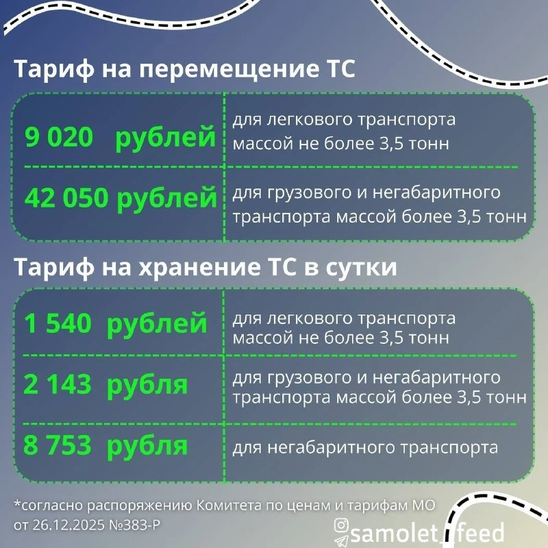 Обновлённые тарифы на перемещение и хранение транспортных средств на спецстоянки Подмосковья.