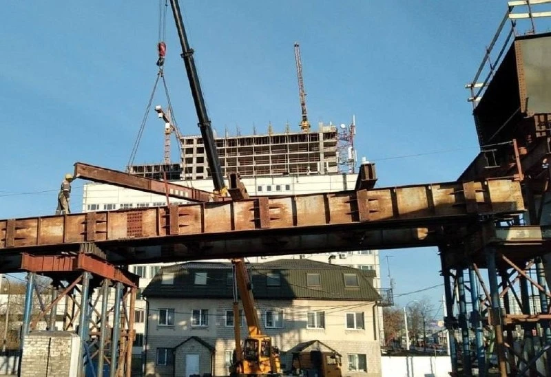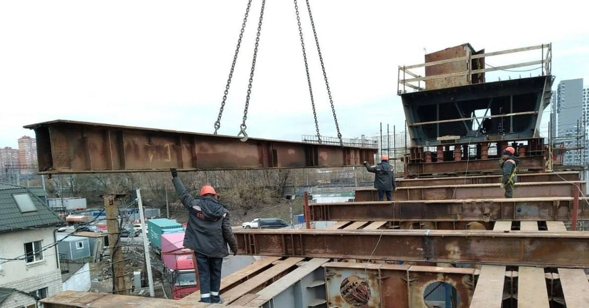 Готовность путепровода составляет 20%. Сейчас дорожники приступили к укрупнительной сборке металлоконструкций, после чего приступят к надвижке пролёта в проектное положение.