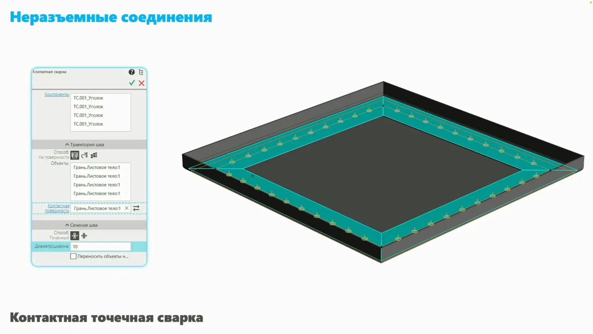 • В команде «Пластина» — переключатель «Построить одним телом» (включено → единое тело из нескольких контуров, выключено → несколько отдельных тел).