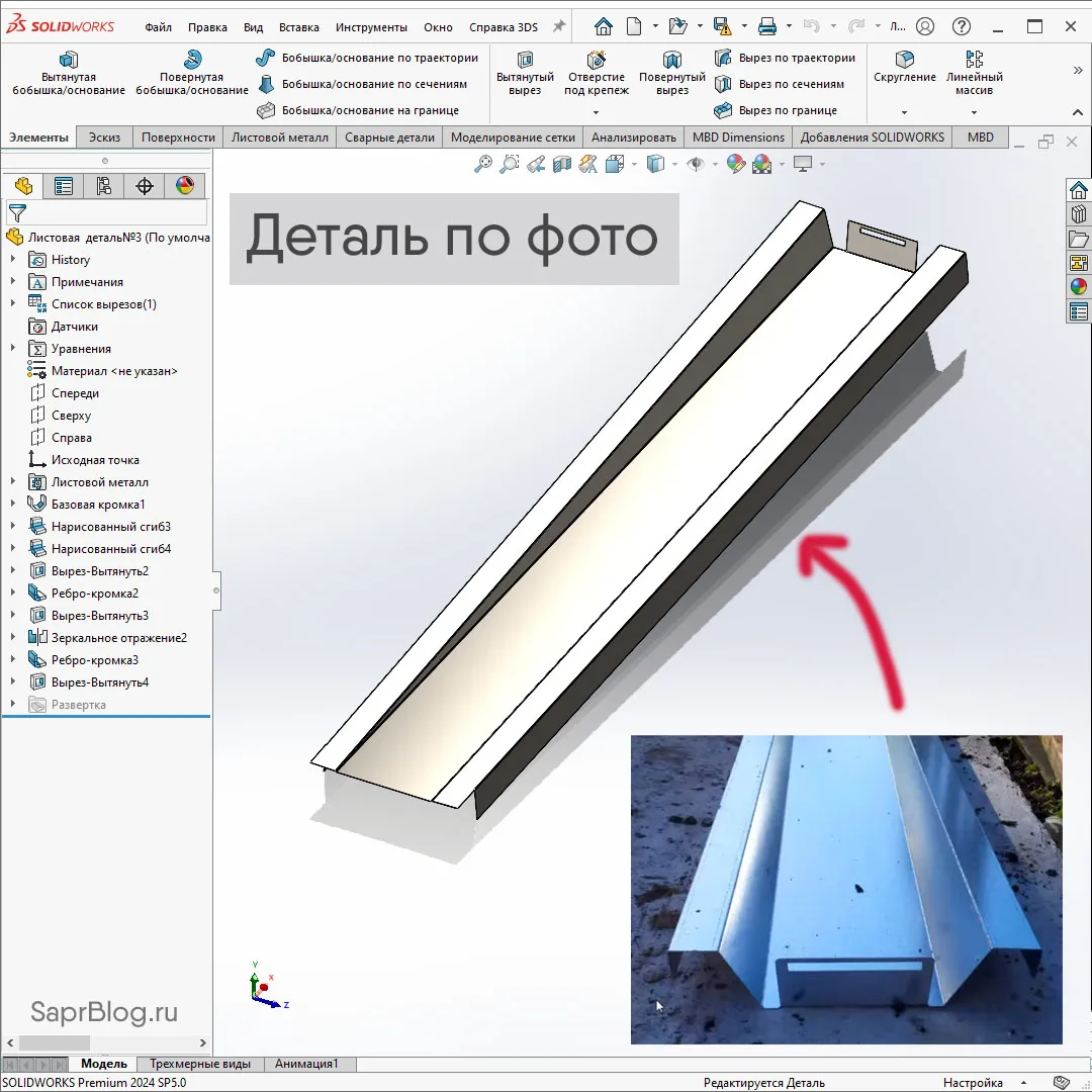 Создание листовой детали в SOLIDWORKS по фотографии