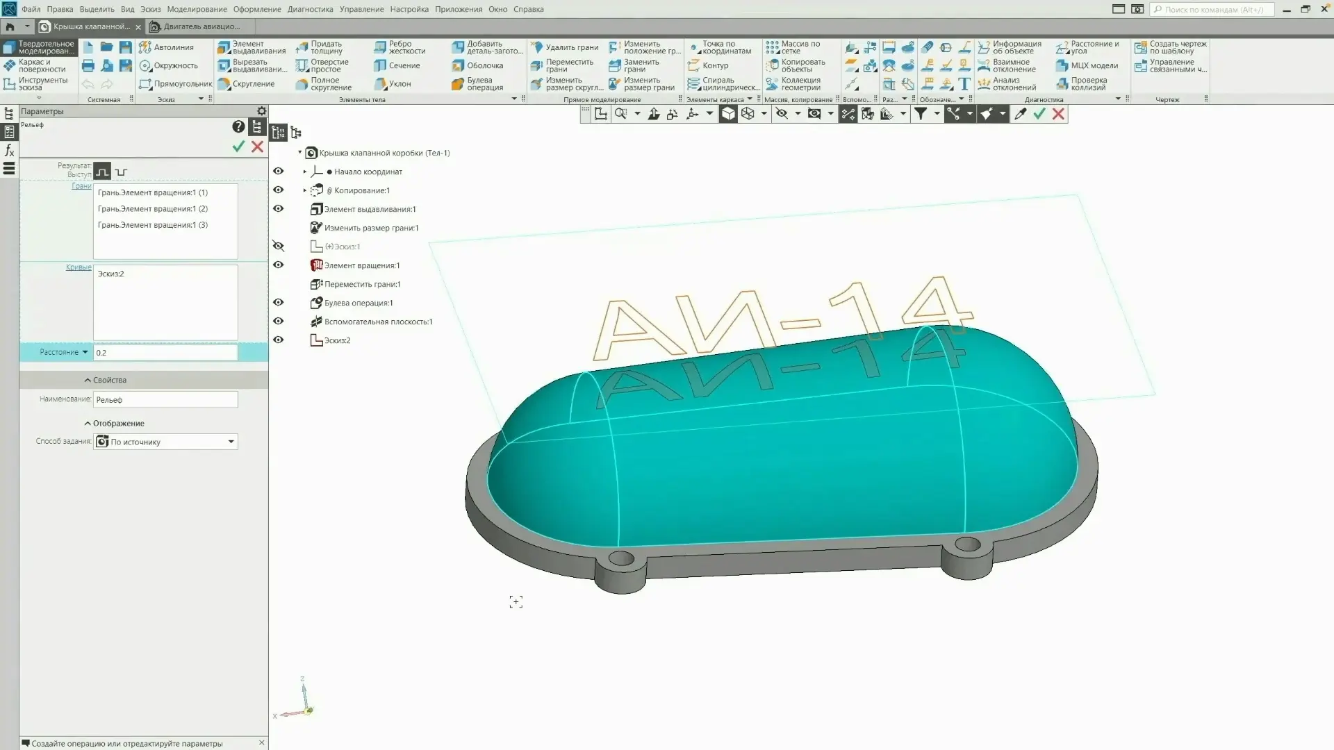 ✅ Рельеф — выступ или углубление на грани (проецирование по нормали).