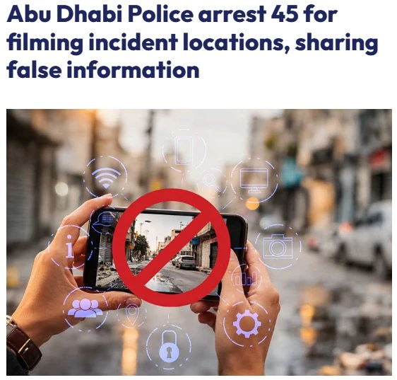 ⚡️В Абу-Даби задержали 45 человек за съёмку последствий атак и распространение фейков, — Khaleej Times.