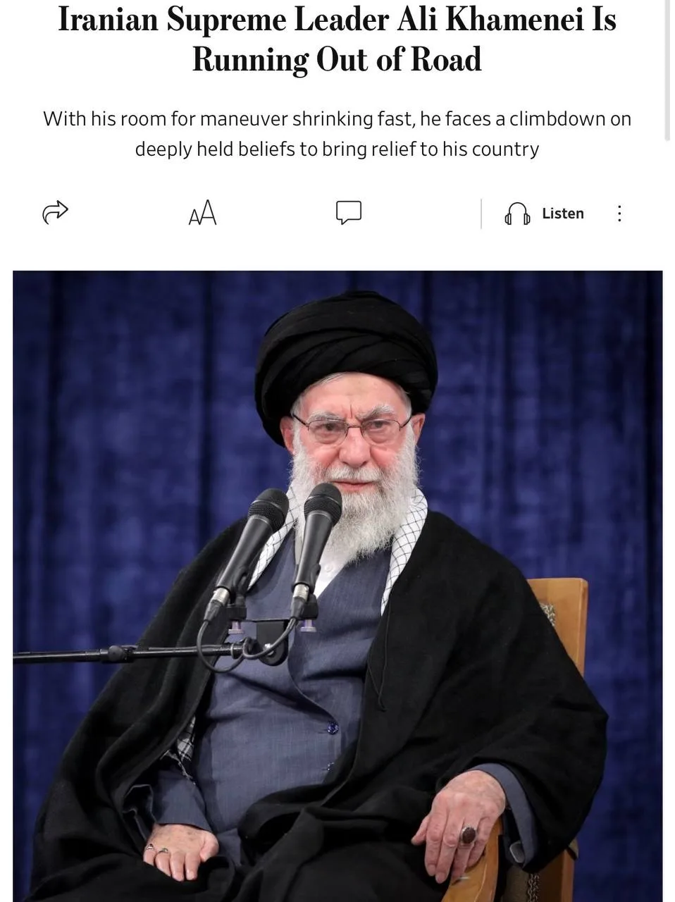 ⚡️Иранский лидер Али Хаменеи оказался в тупике, — The Wall Street Journal.