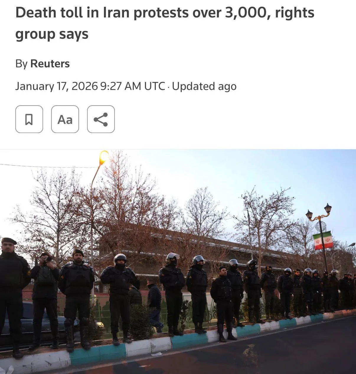 ⚡️Число погибших в протестах в Иране превысило 3000, — Reuters.