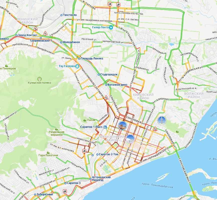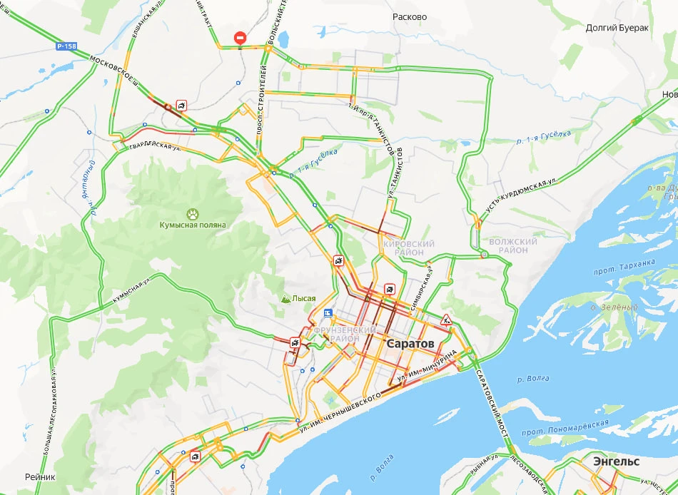 По данным Яндекс карт, в Саратове зафиксированы пробки в 8 баллов. На дорогах отмечено 5 ДТП.