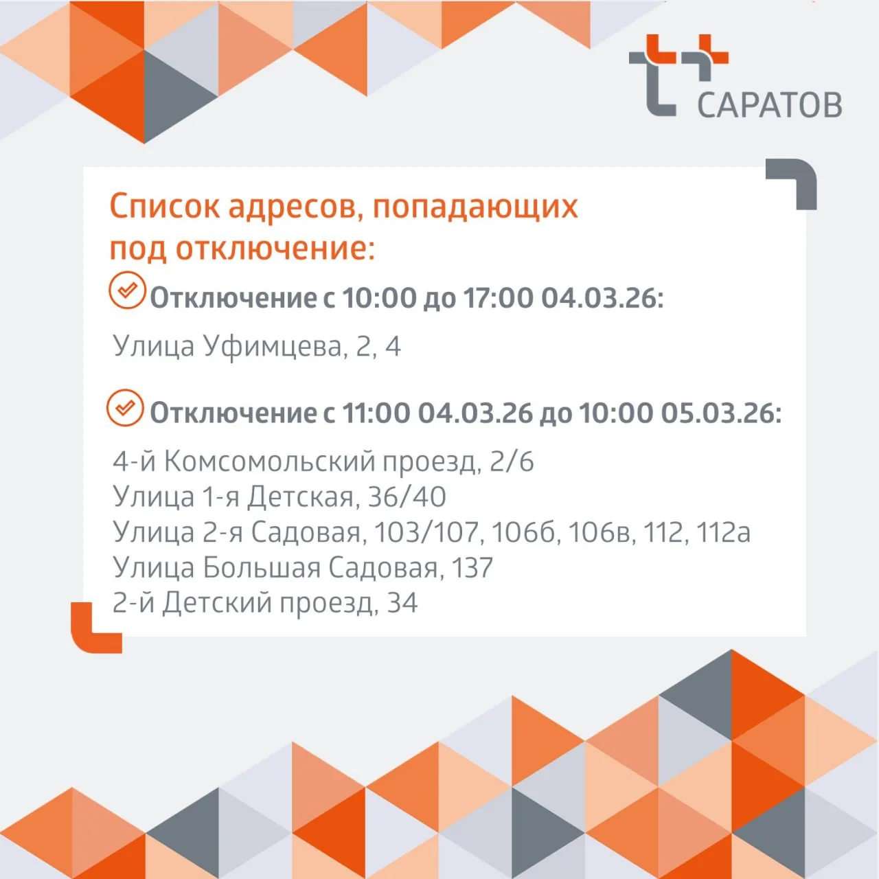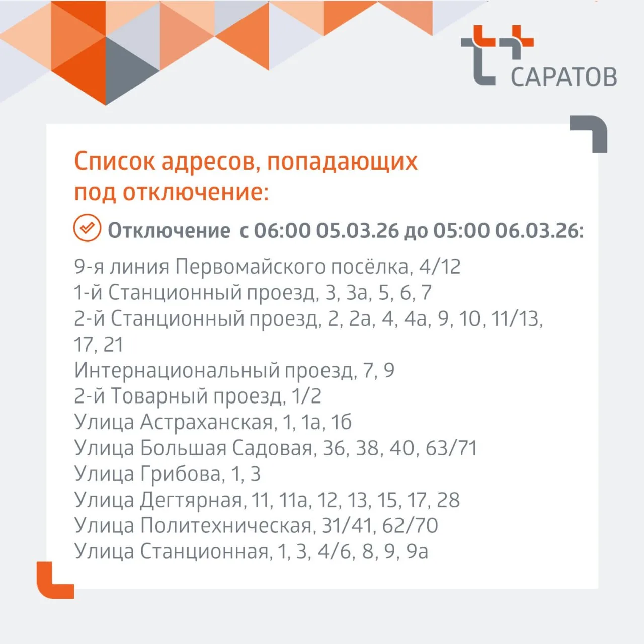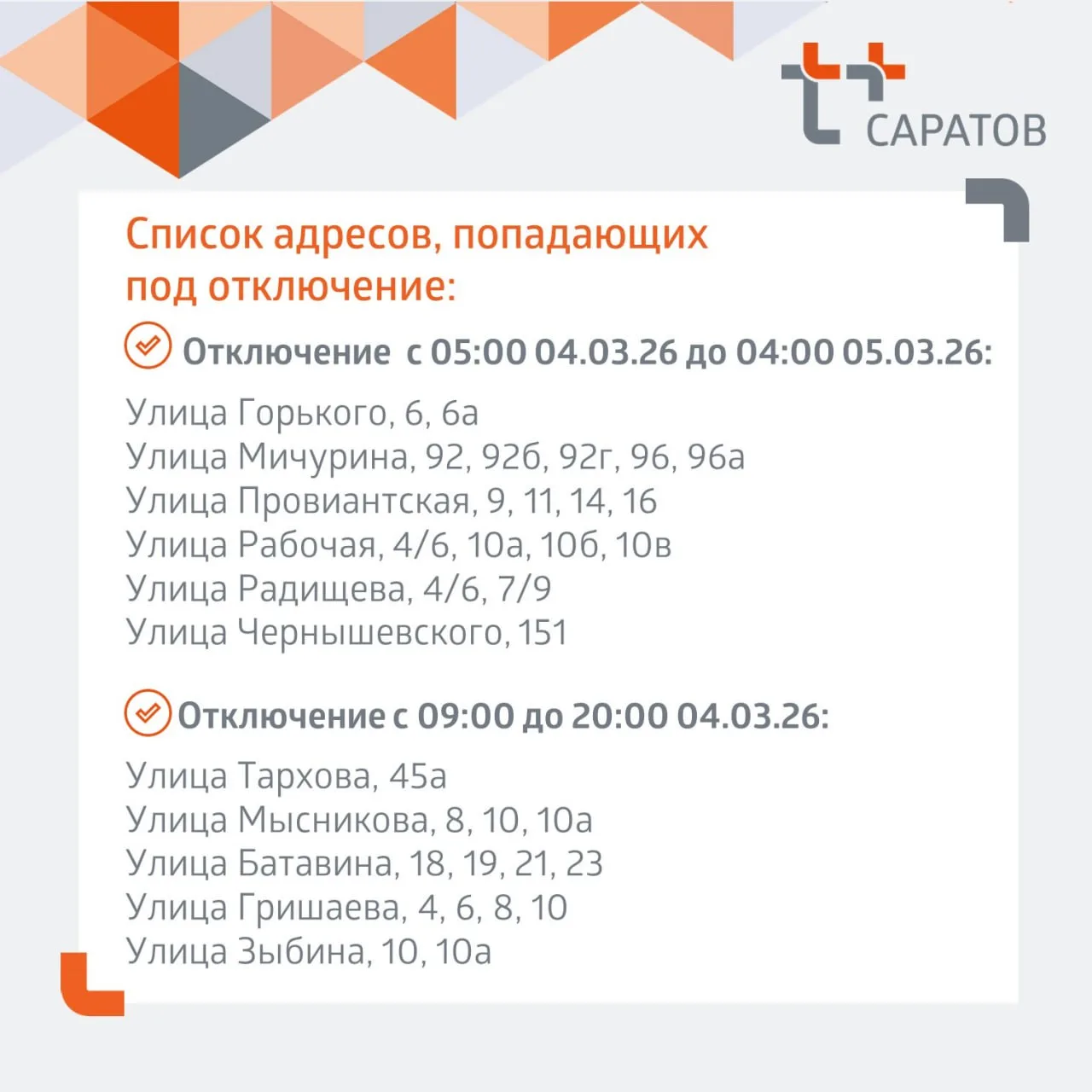 Адреса отключений и планируемое время окончания работ - в карточках 👆