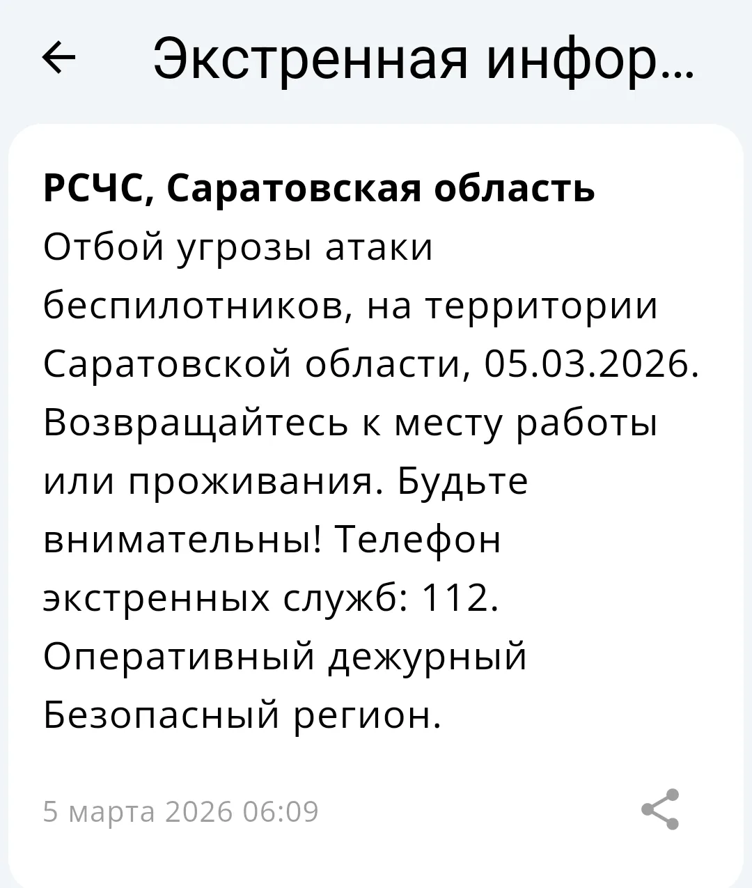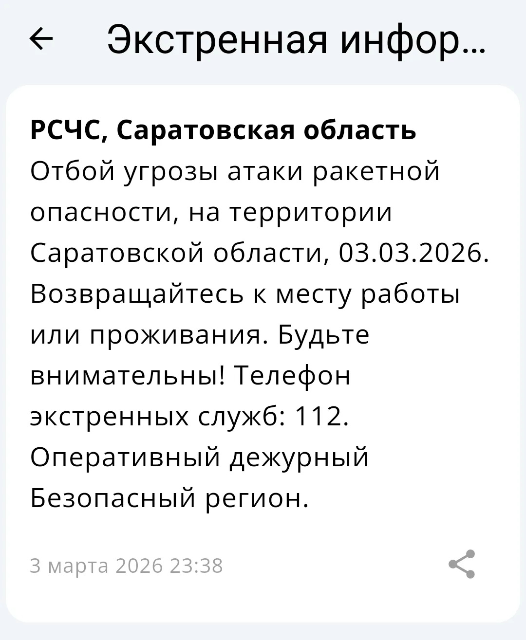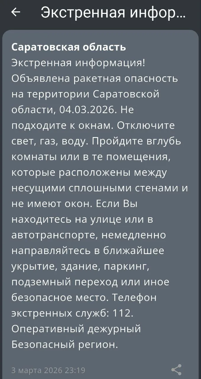 ⚠️ Отбой ракетной опасности в Саратовской области