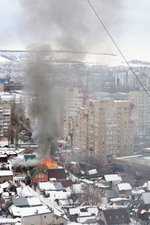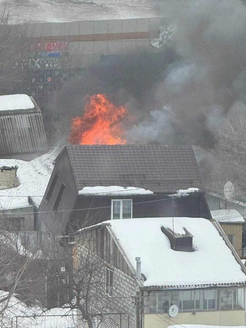 Пожар в частном секторе напротив рынка Арига, Белоглинский проезд