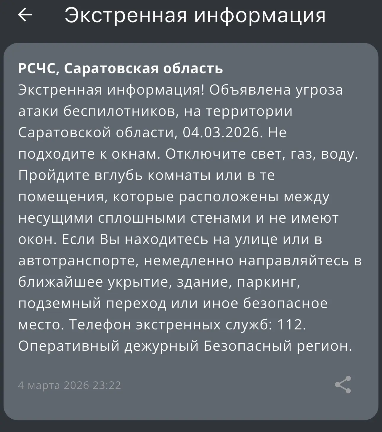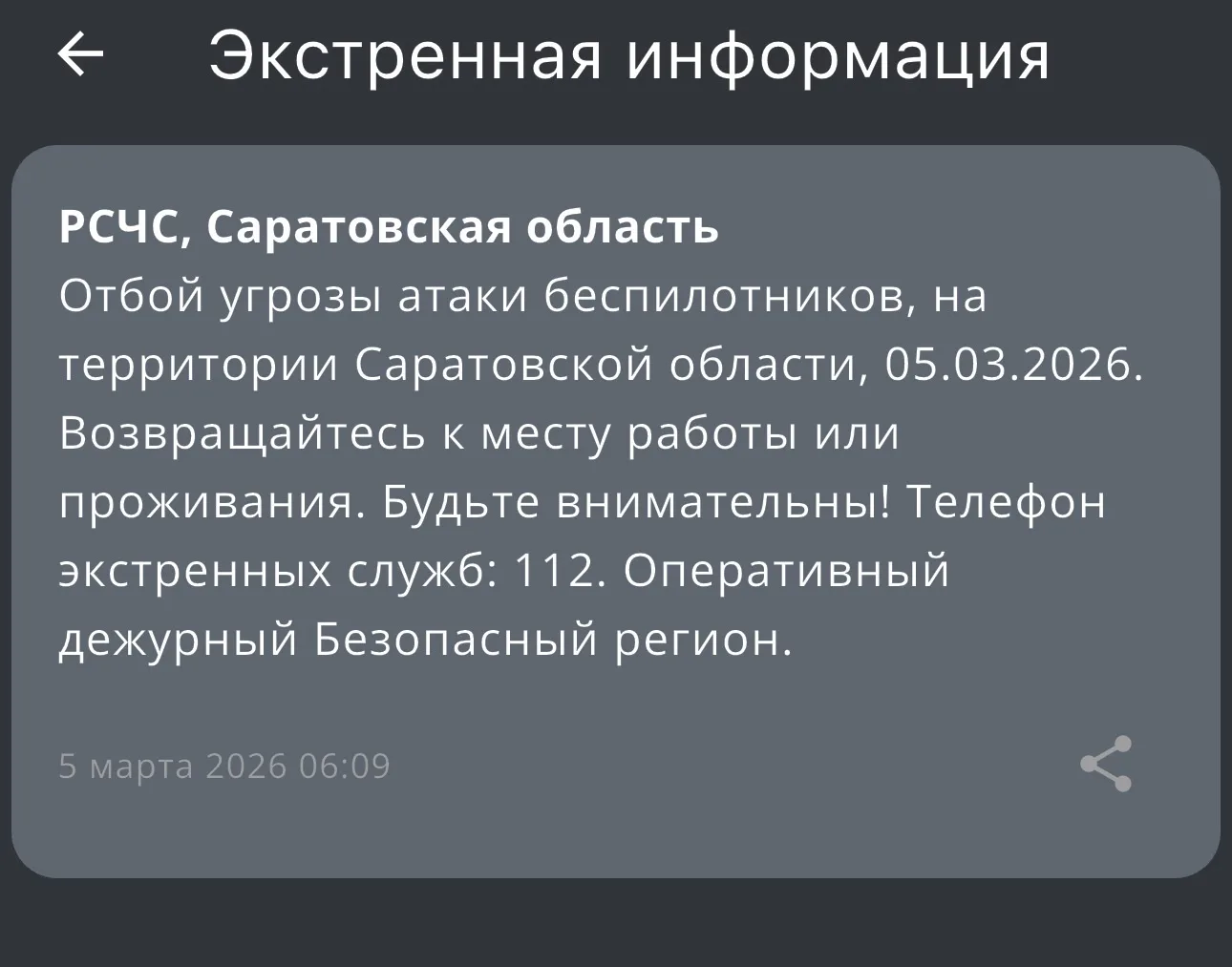 Пришло СМС оповещение об отмене угрозы БПЛА