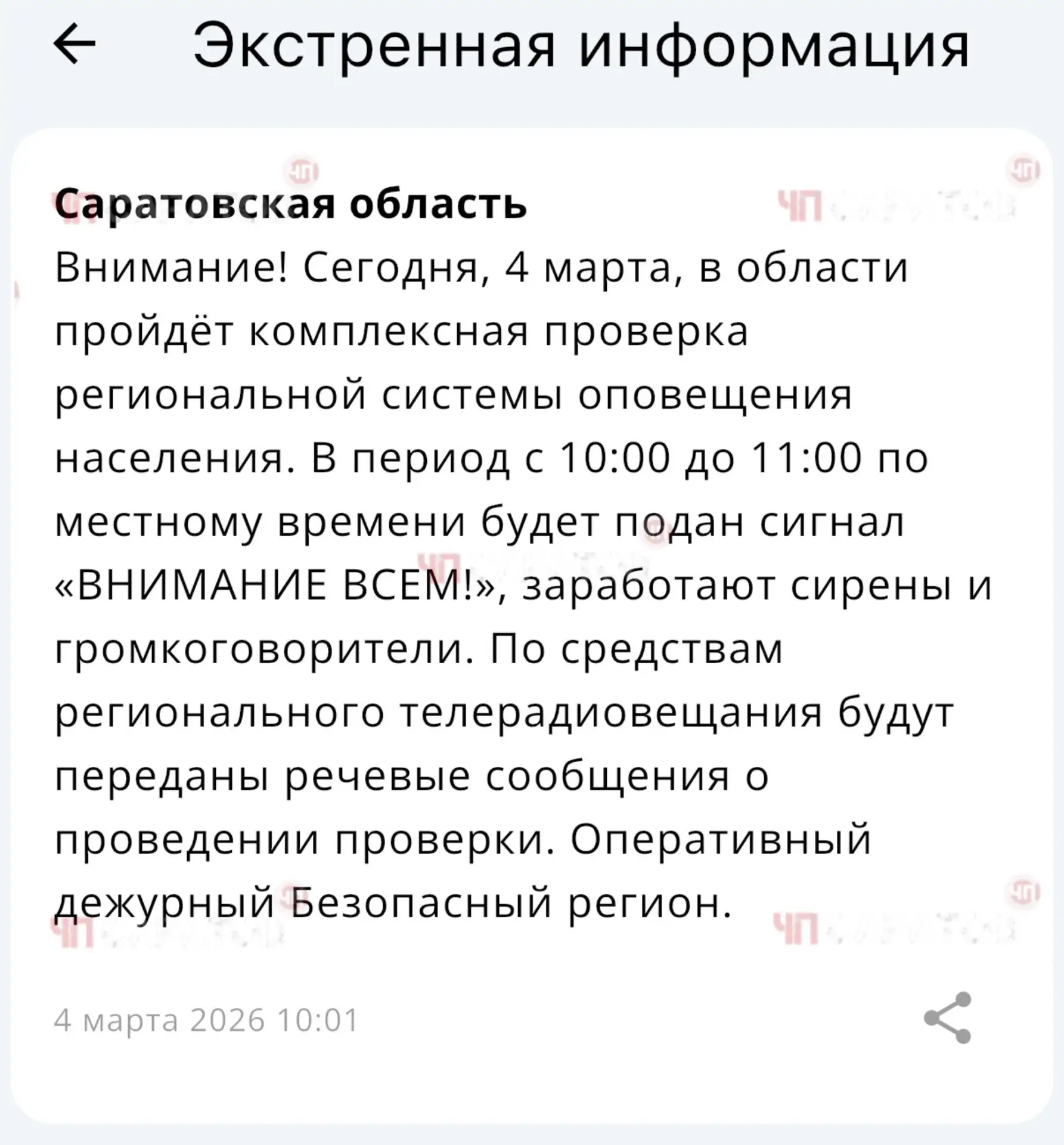 📣 Внимание! Сегодня, 4 марта, в области пройдёт комплексная проверка региональной системы оповещения населения. В период с 10:00 до 11:00 по местному времени будет подан сигнал