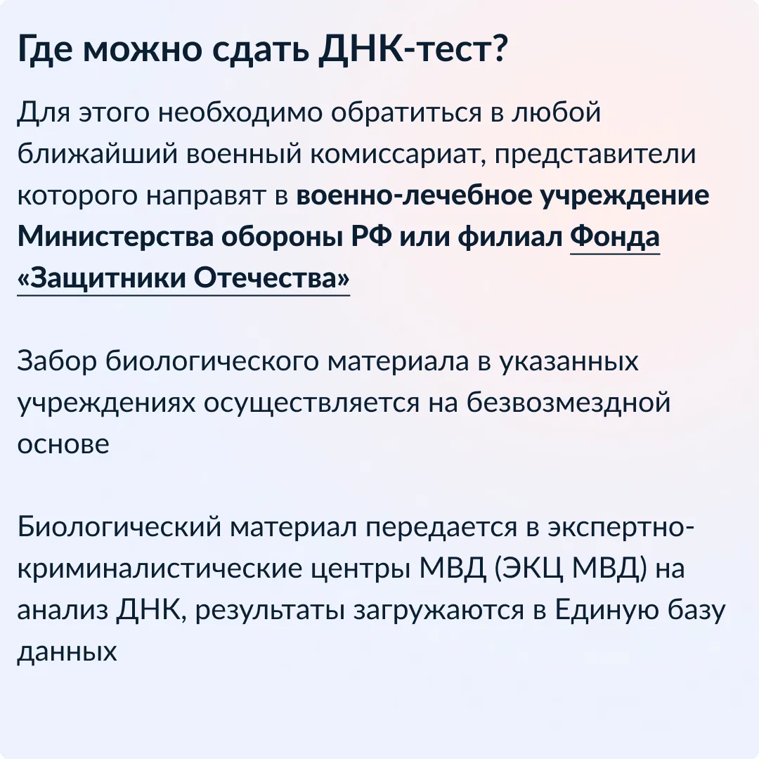 ❓Что необходимо знать о сдаче ДНК в отношении пропавшего военнослужащего?