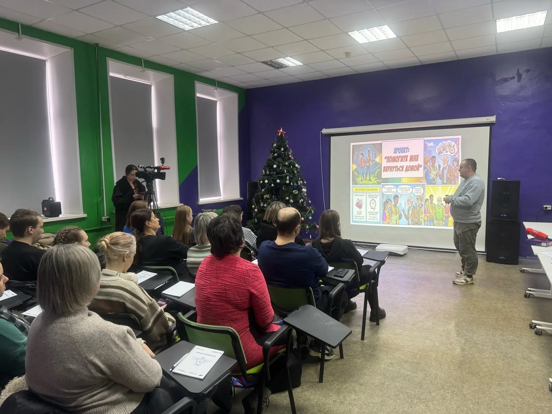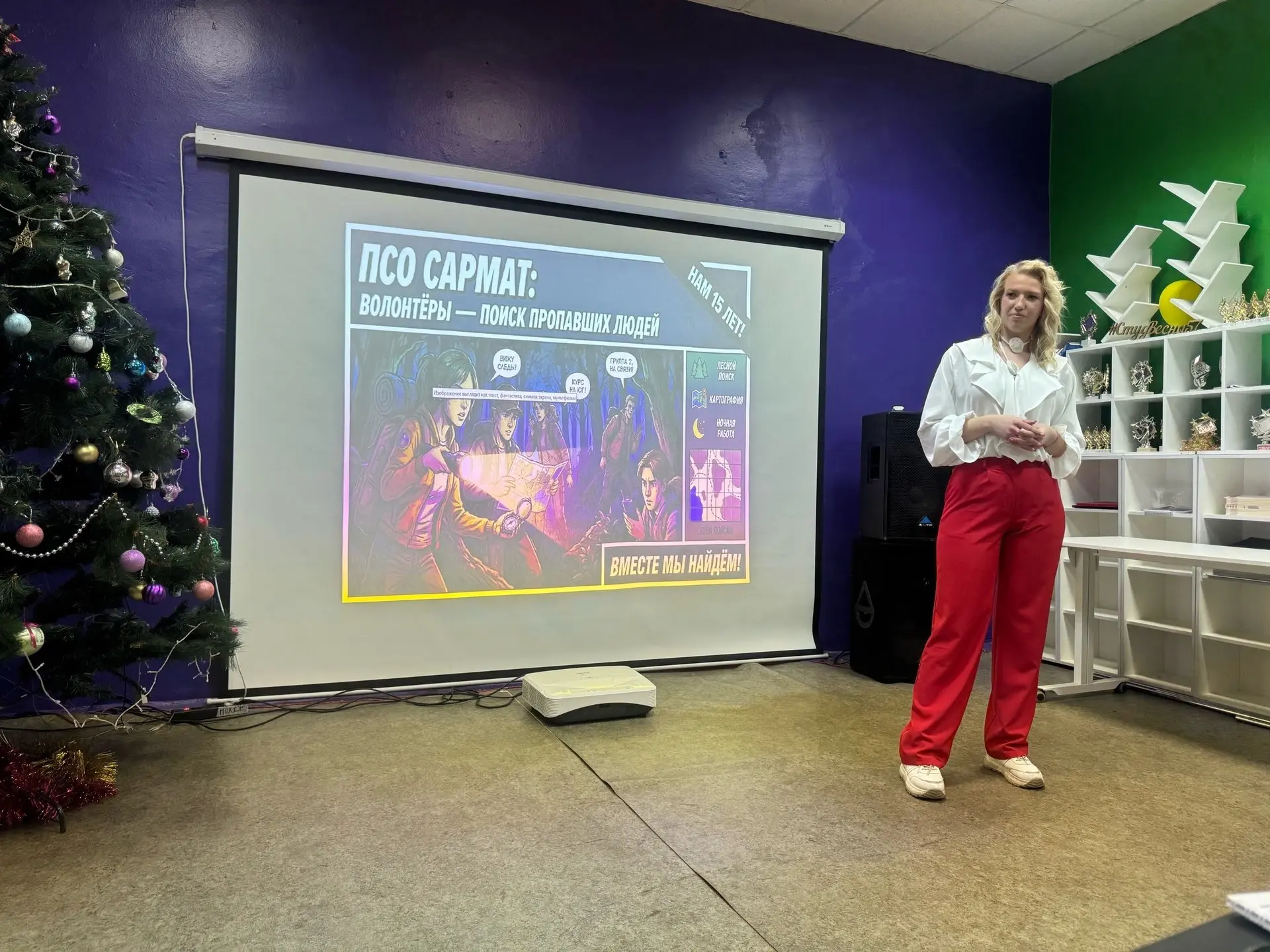 В рамках установочной встречи участников проекта "Точка поиска" начальник ПСО "Сармат" Олег Тютякин представил социальный проект «Помогите мне вернуться домой: термонаклейки для идентификации людей, страдающих потерей памяти».
