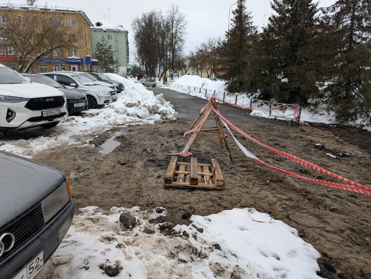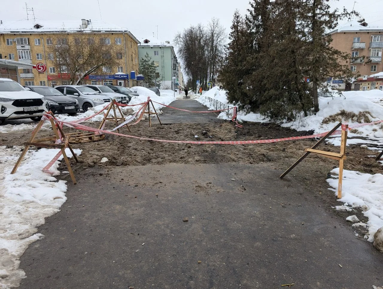 Подскажите-расскажите, пожалуйста, как здесь ходить девушкам с коляской, пожилым людям, да и вообще простым пешеходам? Вариант идти вдоль магазина Пятерочка – не вариант (колея высоченная, машинам-то сложно проезжать и парковаться).