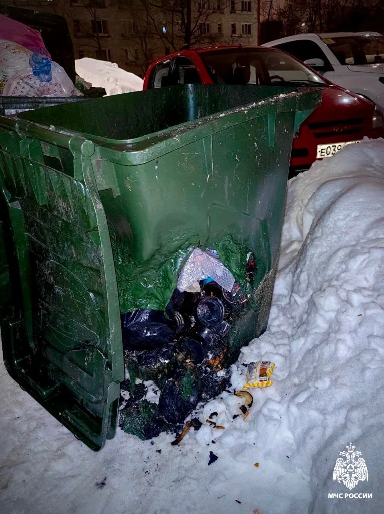 13 февраля по адресу: ул. Бессарабенко, д. 19 произошел пожар в мусоросборной камере. Площадь пожара — 1 кв. м. Частично поврежден 1 пластиковый контейнер. Причина пожара — неосторожность при курении.