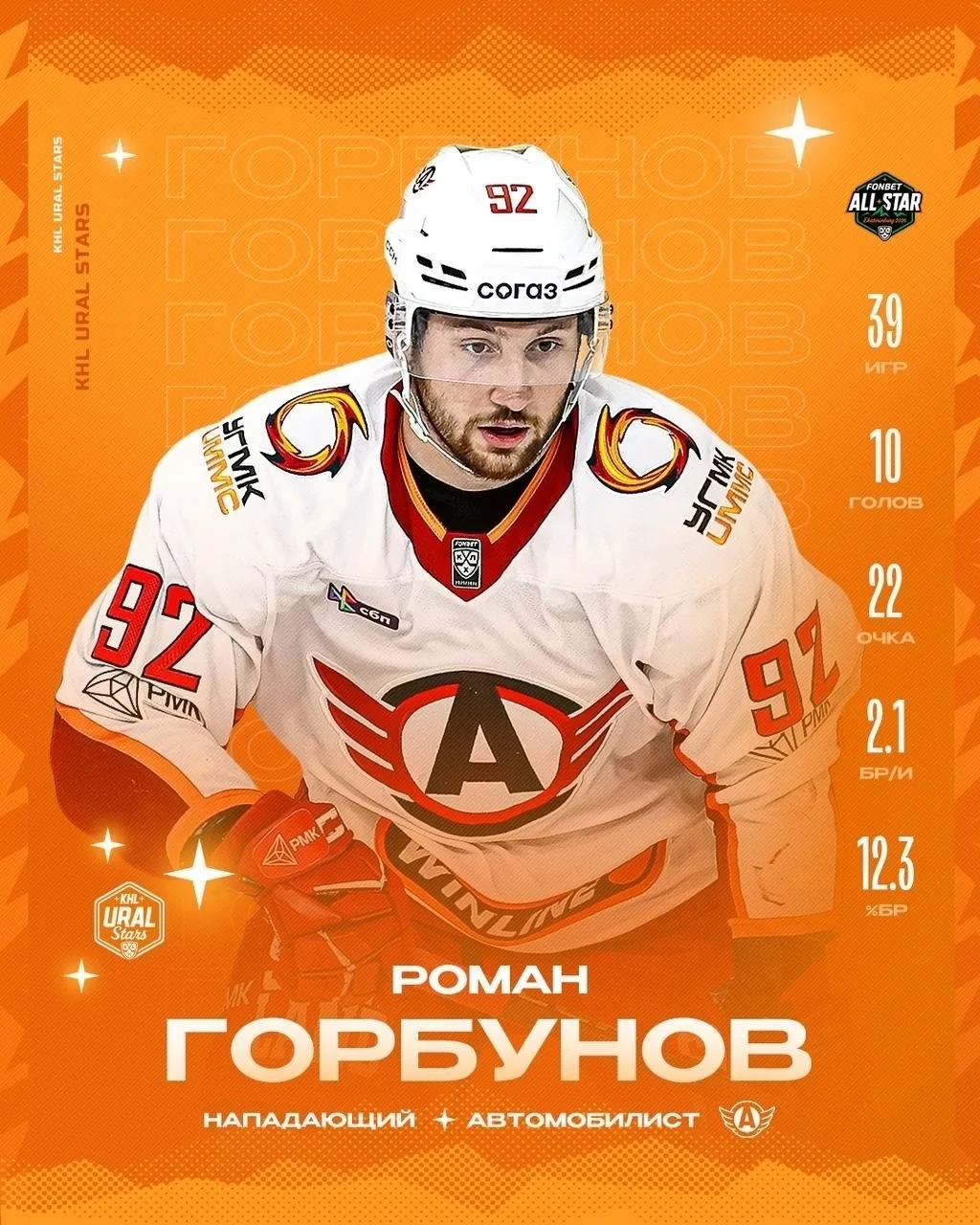Один из лучших бомбардиров «Автомобилиста» Роман Горбунов дополнит атаку команды KHL Ural Stars!