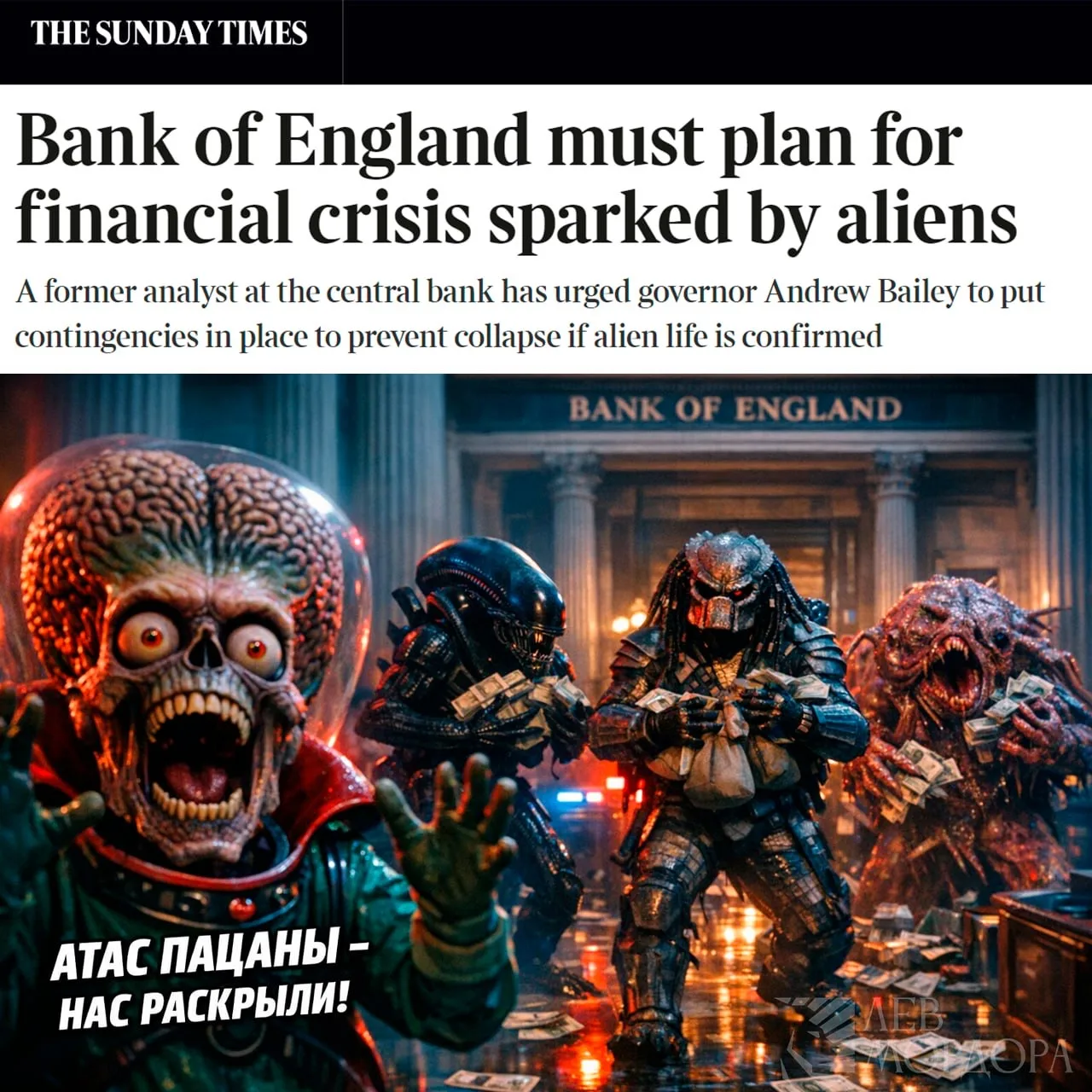 Главу Центробанка Великобритании призвали принять меры по подготовке к финансовому кризису, который случится из за инопланетян - The Sunday Times