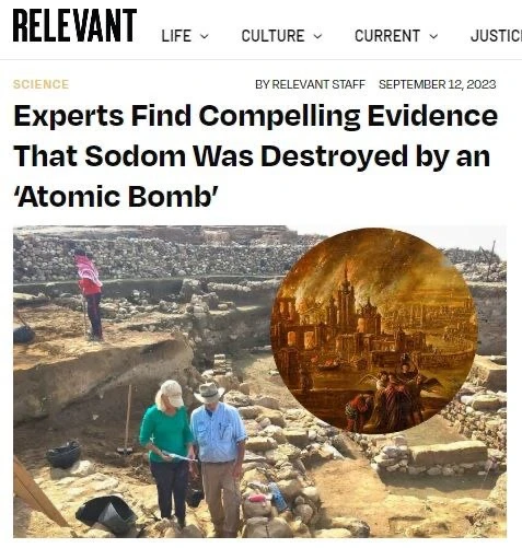 В общем это даже не сенсация, а устоявшаяся точка зрения. Даже в Википедии об этом написано. Речь о городище Телль-эль-Хаммам, что в Иорданской долине, неподалеку от Иерихона. Известно с середины 5-го тысячелетия до нашей эры. Жили там люди не тужили примерно 30 веков, а то и больше, но в середине 2-го тысячелетия до нашей эры город был внезапно стерт с лица земли. И вот считается, что он был разрушен то ли метеоритом, то ли, понимаешь, атомной бомбой. Во всяком случае мощность взрыва в тысячу раз превышала мощность взрыва в Хиросиме.