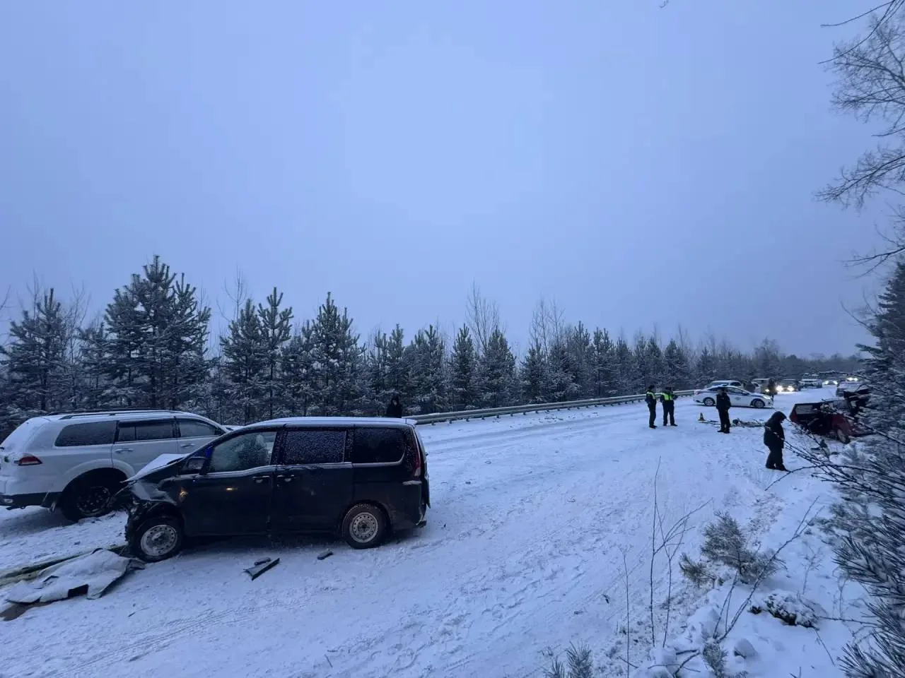 Напомним, авария произошла около 07:15 на 2 км автодороги Саяногорск-Майнская ГЭС-Черемушки. 49-летняя женщина на Nissan Serena при обгоне выехала на встречную полосу, не справилась с управлением и допустила столкновение с автомобилями Honda Airwave под управлением мужчины 1971 года рождения и Mitsubishi Pajero под управлением мужчины 1967 года рождения.
