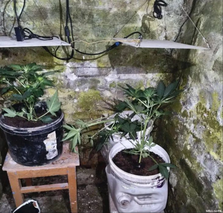 В подвальном помещении силовики обнаружили оборудованную «теплицу» с освещением и три ёмкости, в которых росли пять кустов запрещённого растения.