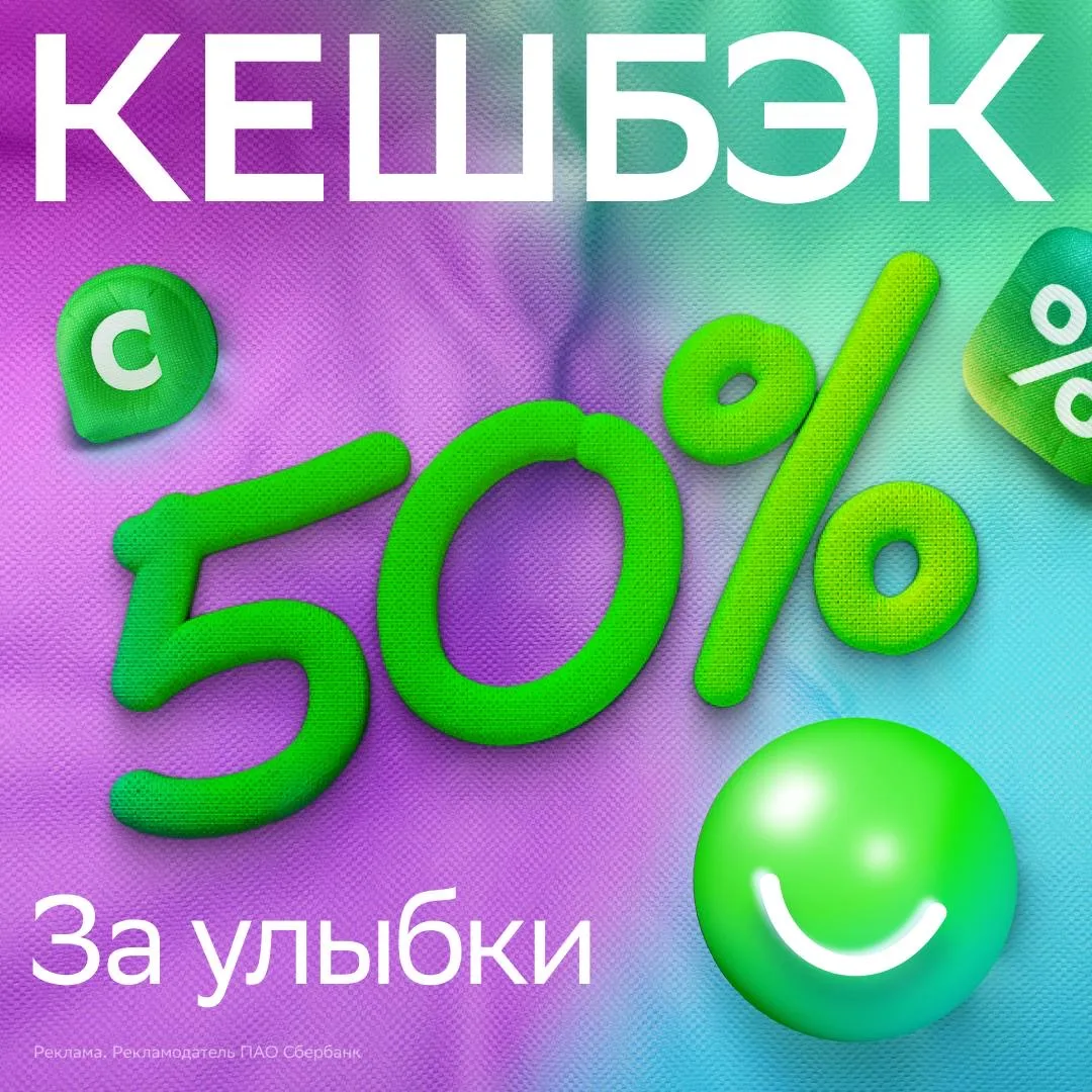 А ещё напомнить вам, что с 3 по 5 октября вы получите кешбэк 50% бонусами Спасибо за свою первую оплату улыбкой 💚