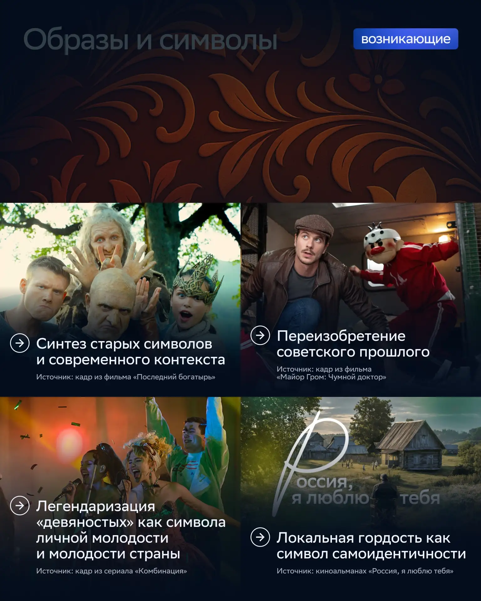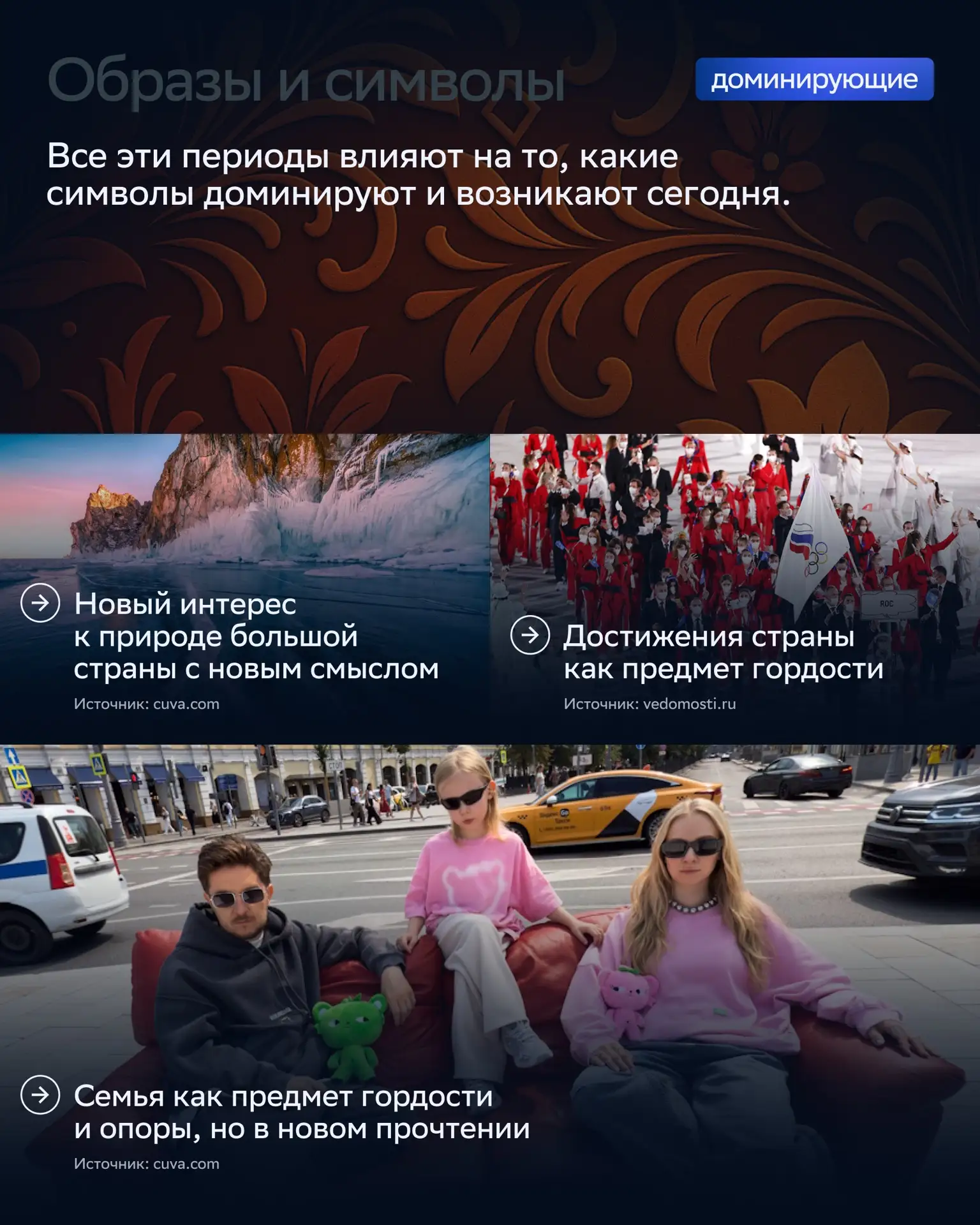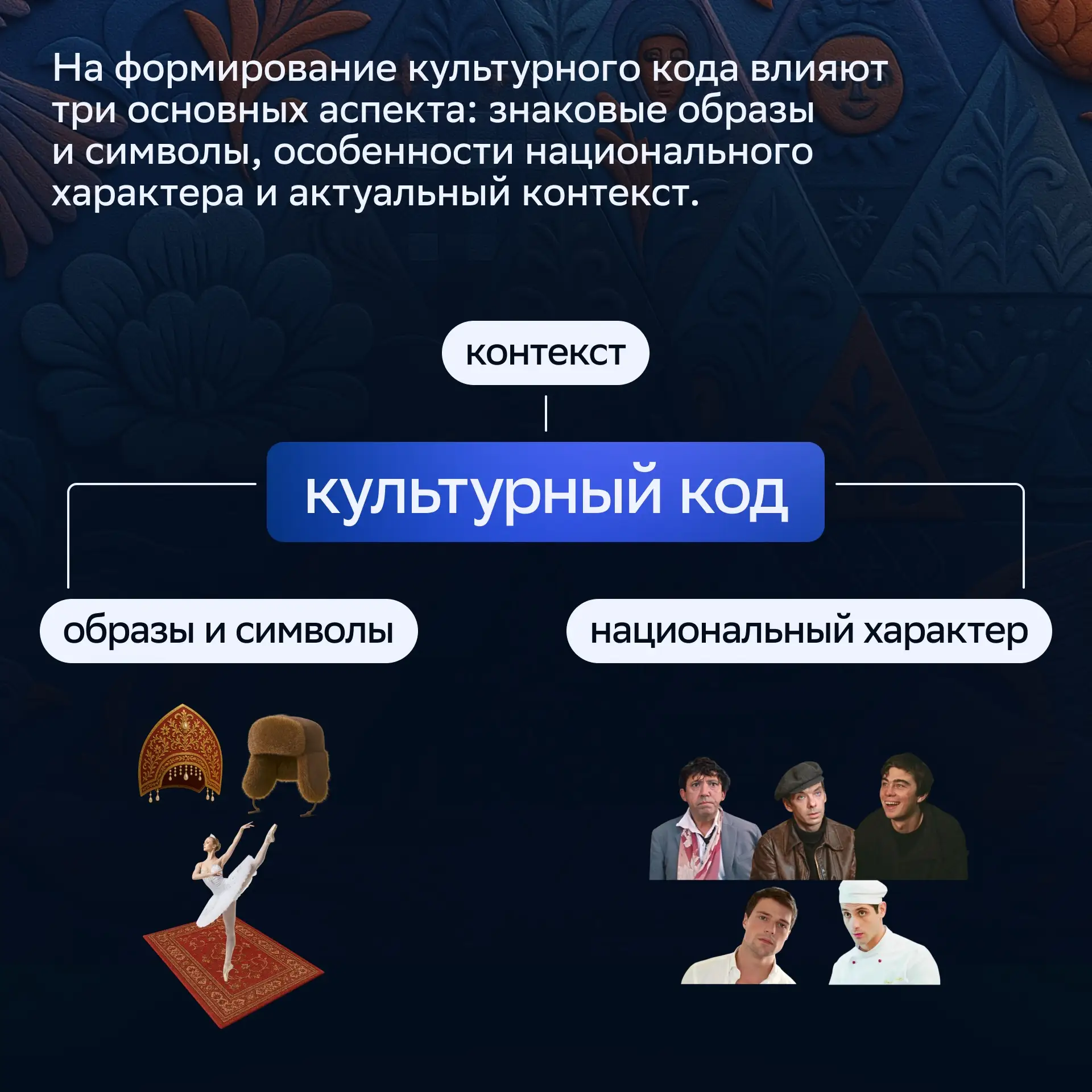 В карточках рассказываем, из каких элементов складывается культурный код. А совсем скоро поделимся нашим новым исследованием — следите за обновлениями 👌