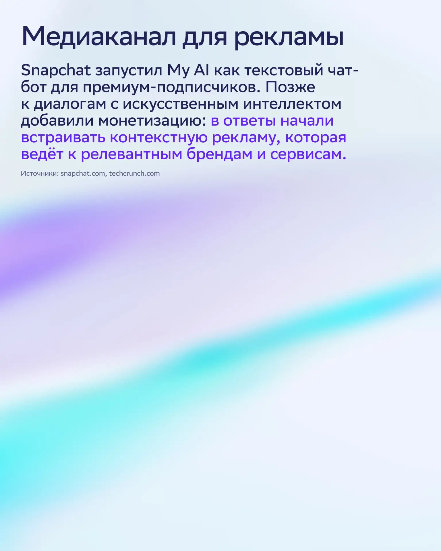 В компании объяснили, что так тестировали показ приложений, созданных на платформе ChatGPT, — для брендов это было бесплатно, без коммерческой составляющей. Также OpenAI заявила, что сейчас в сервисе нет активных тестов рекламы. Если их запустят, то подход будет осторожным и вдумчивым.