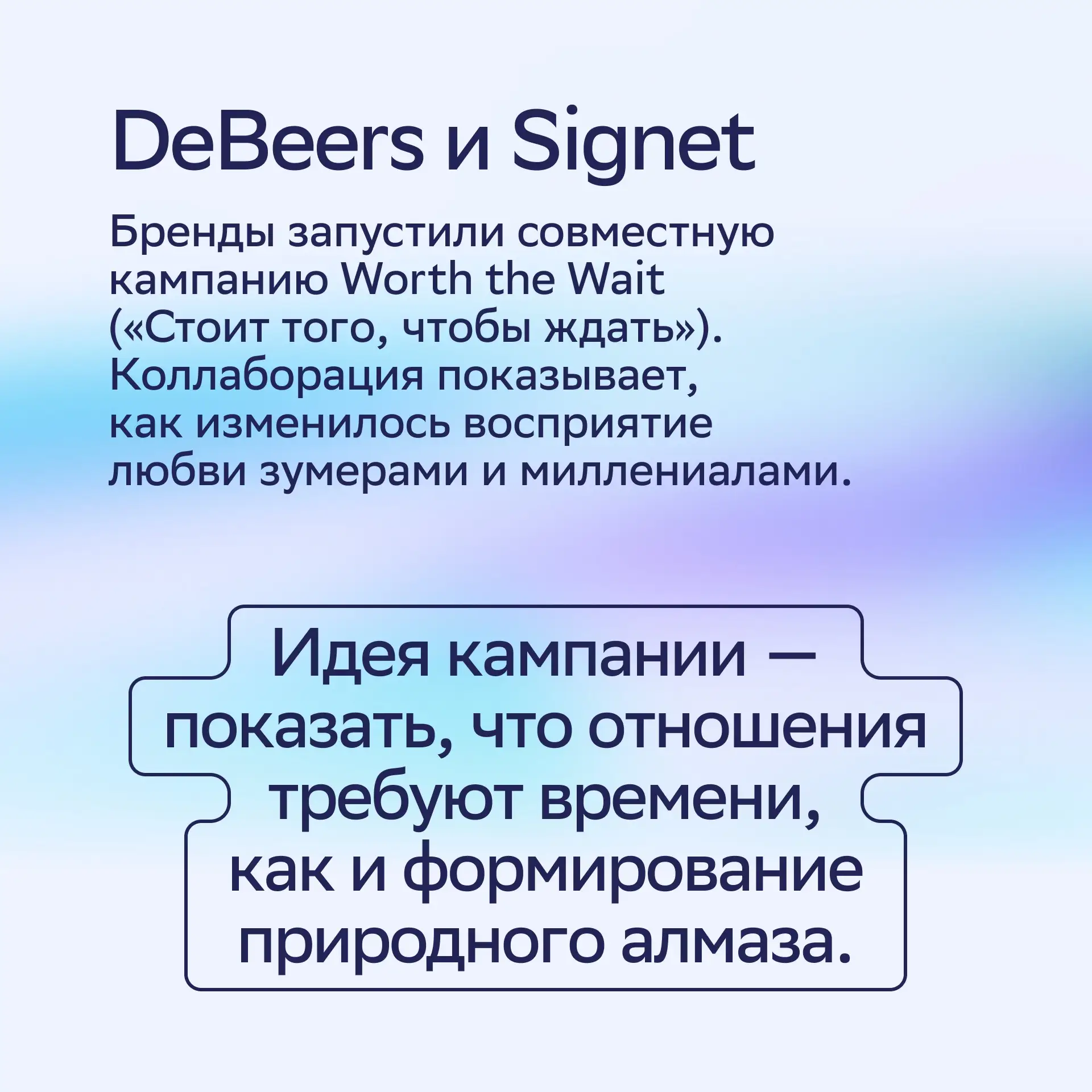 Вместе с этим меняется и тональность маркетинга. Бренды всё чаще говорят о технологиях и экологичности, а бриллианты позиционируются как элемент стиля, который можно носить каждый день.