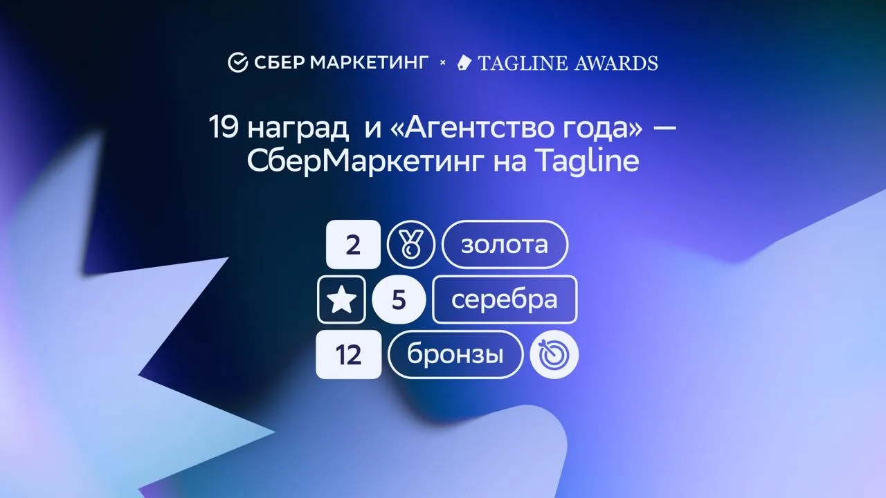 Стали известны результаты XII ежегодной премии Tagline Awards. Команда СберМаркетинга получила 19 наград в разных номинациях, включая специальную — «Агентство года»: две золотые, пять серебряных и 12 бронзовых.