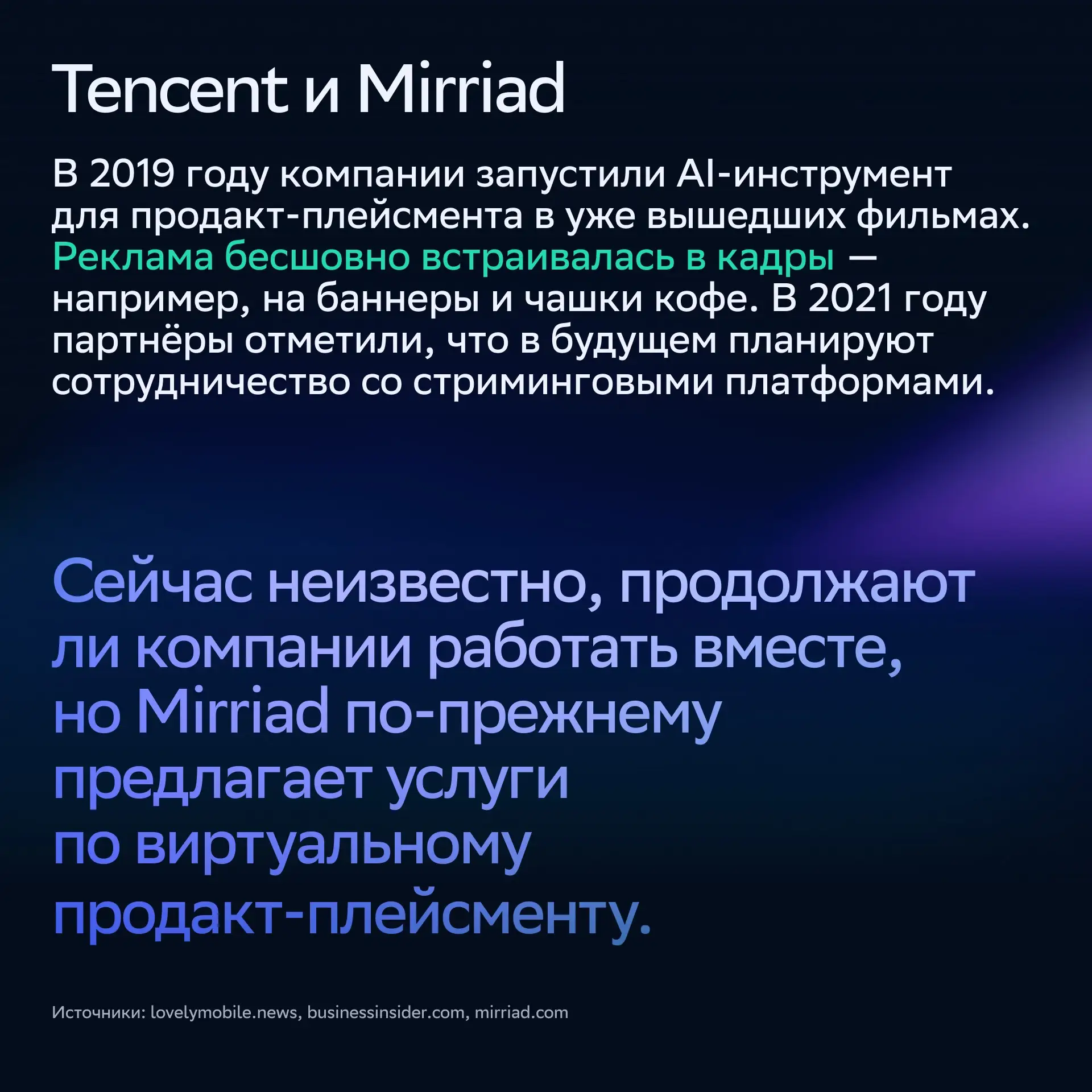 AI-продакт-плейсмент уже показывает эффективность. Kantar отмечает, что на такую рекламу положительно реагируют 79% пользователей. В карточках рассказываем, какие компании уже внедряют новую технологию.