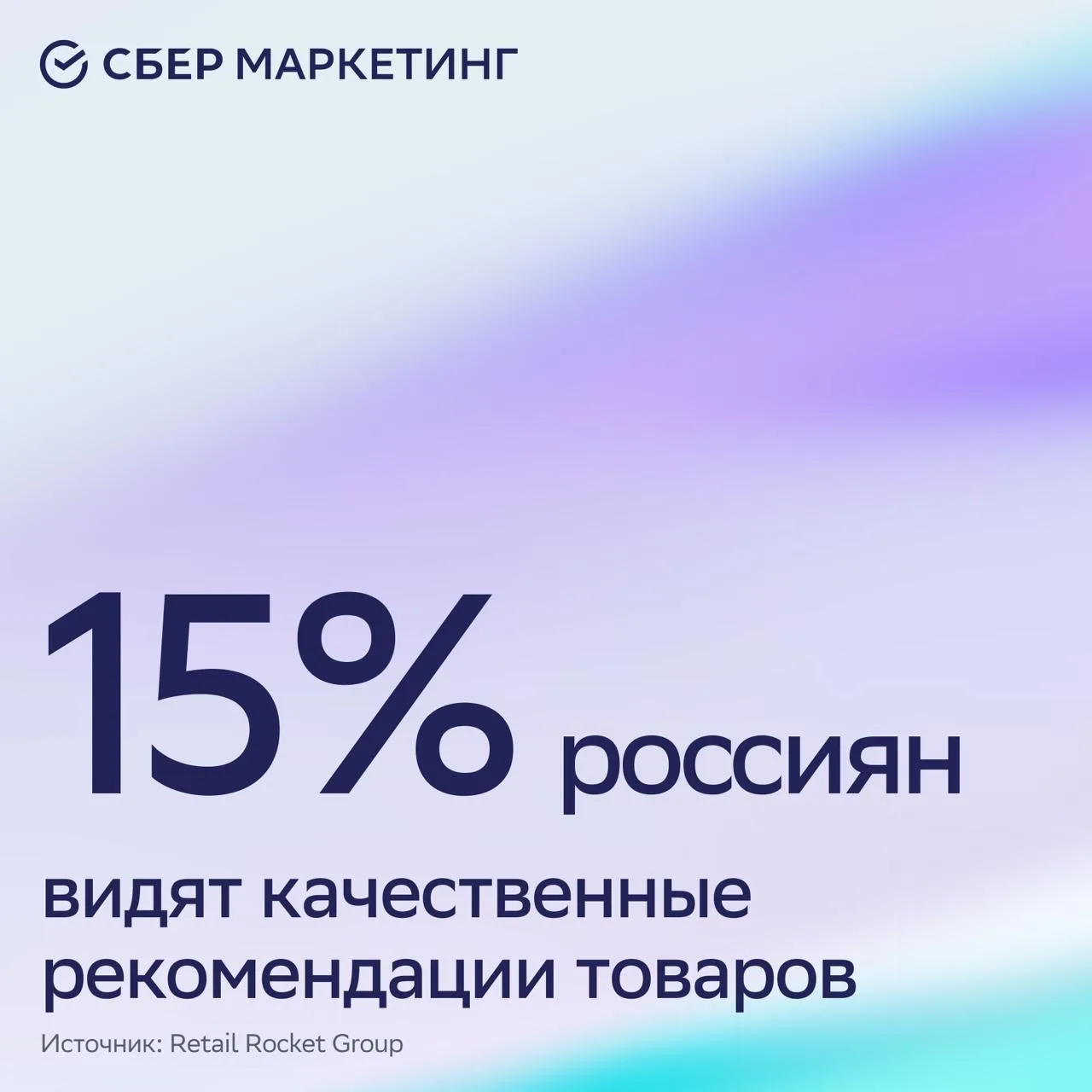 Исследование Retail Rocket Group показало, что только 15% онлайн-покупателей в России почти всегда получают релевантные рекомендации товаров по интересам и бюджету. 62% респондентов либо ни разу не покупали по советам алгоритмов, либо делали это всего пару раз. Лишь 29% встречали подборки, которые опирались на их поведение в онлайне.