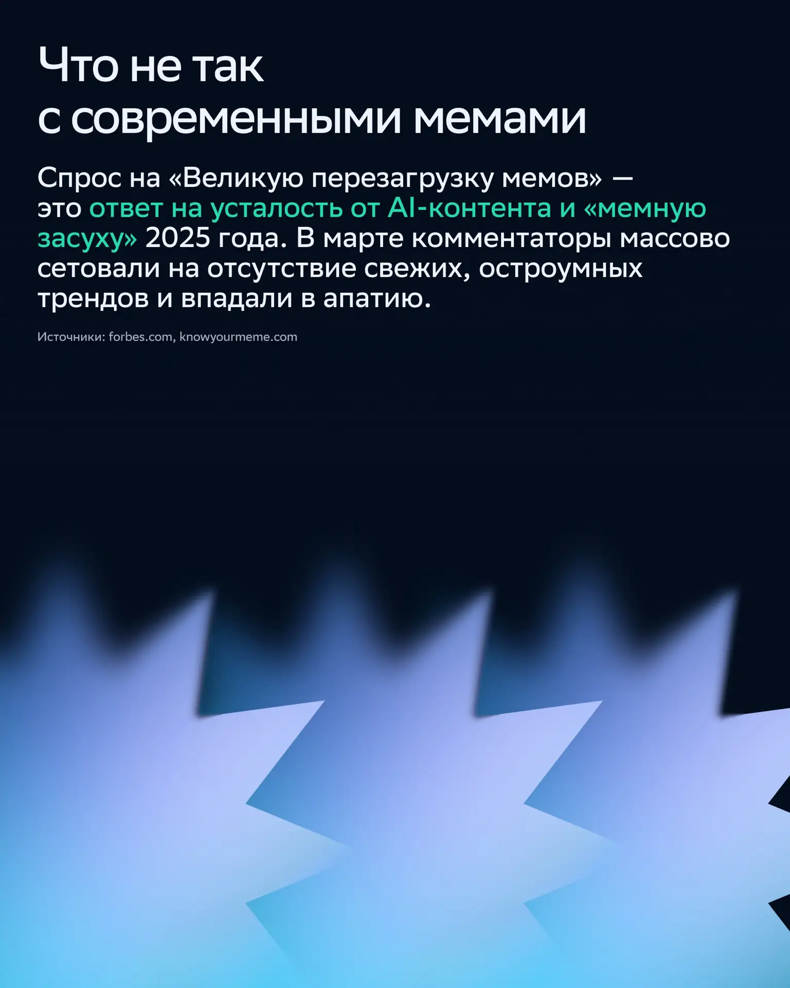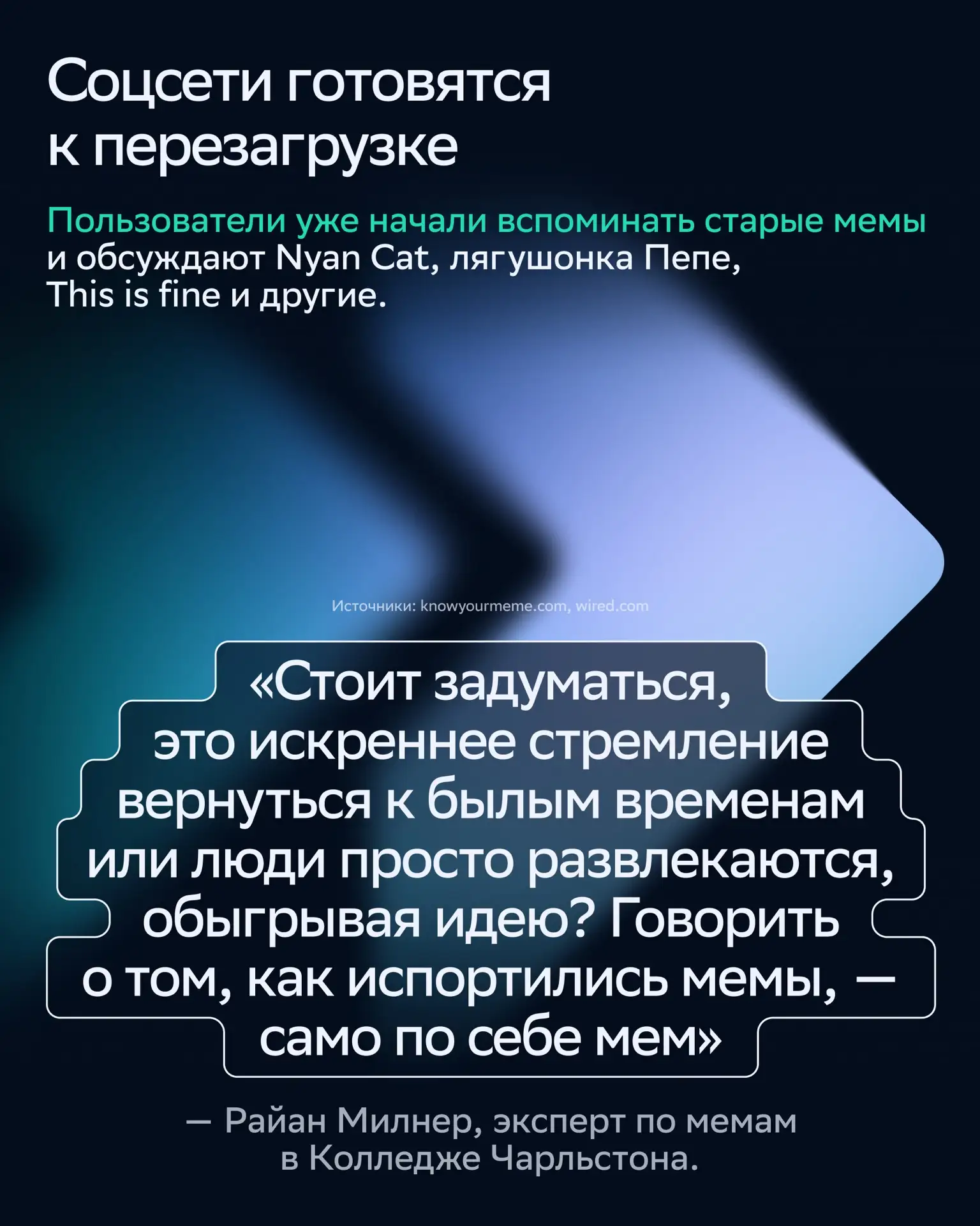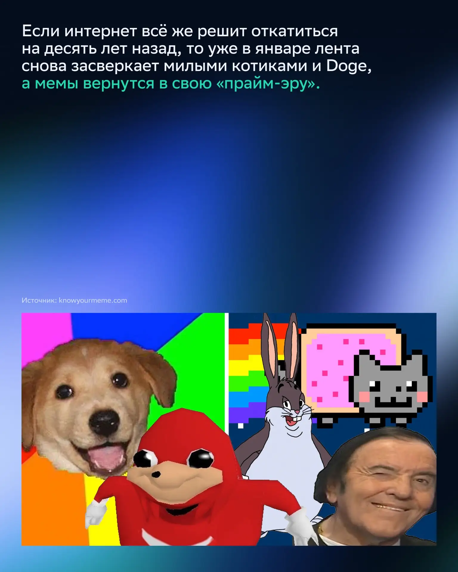 О том, почему интернет ностальгирует по прошлому и как могут выглядеть мемы в январе, рассказываем в карточках.