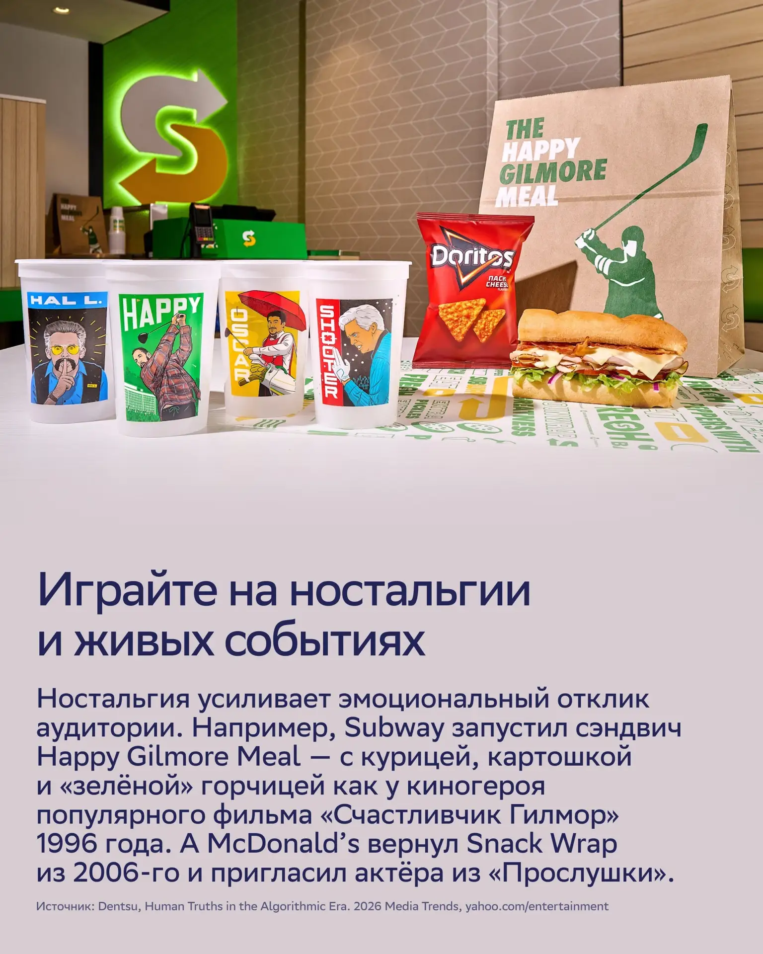 В последнее время бренды подстраиваются под эту тенденцию. Компании всё чаще предлагают аудитории не гнаться за трендами и не бояться пропустить сезонную распродажу, очередную технологическую новинку или мероприятие.
