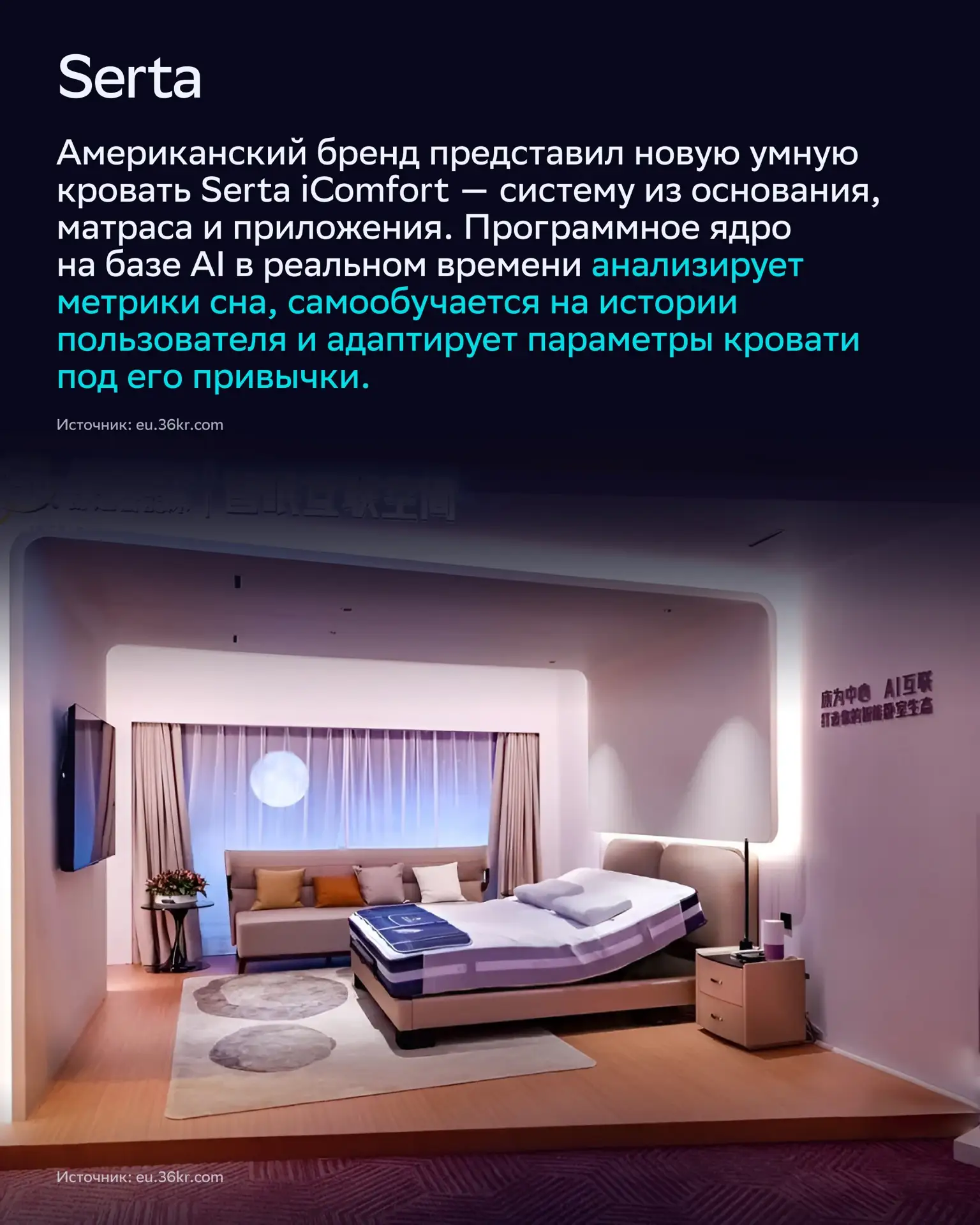 В свою очередь производители товаров для сна стремятся улучшить пользовательский опыт: внедряют AR, AI и 3D‑технологии. В карточках собрали интересные примеры.